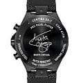 Мужские часы-хронографХронографФункция позволяет измерять отрезки времени с особой точностью: часы, минуты, секунды. Верным признаком хронографа является наличие на циферблате 3 дополнительных окошек-счётчиков. Certina DS-7 Chronograph Padel Edition by Marta Ortega C043.417.38.201.10. Корпус часов изготовлен из нержавеющей стали 316L с PVD-покрытиемPVDУльтратонкое покрытие наносится в технике вакуумного напыления, сочетает в себе нитрид титана особой прочности со слоем золота или оксида хрома. Несёт в себе декоративную или защитную функцию.. Под твердым сапфировым стекломСапфировое стеклоПрочный и надёжный материал из кристалла сапфира синтетического происхождения, характеризующийся особой твёрдостью и устойчивостью к царапинам и повреждениям. с антибликовым покрытиемАнтибликовое покрытиеСлой оксида металла в 0,13-0,3 микрон, благодаря которому стекло часов не бликует и не отражает свет. Антибликовое покрытие уменьшает отражение света в 10 раз, обеспечивая отличную читаемость показателей циферблата. находится черный циферблат и на котором вы найдете окошко даты в положении 4 часа, а также маркировку, покрытую люминесцентным покрытиемЛюминесцентное покрытиеПозволяет считывать показания времени в темноте. Производители наносят на стрелки, часовые индексы, безель или поверхность циферблата светонакопительный состав, дающий холодное свечение. Super-LumiNova. Класс водозащиты: 100 метров, позволит плавать, нырять и заниматься другими водными видами спорта. Тканевый ремешок на застёжке-бабочке с кнопкамиЗастёжка "бабочка"Такой вид застёжки дополняется предохранителями, помогающими избежать случайного раскрытия браслета. Обладают изящным исполнением. .ТахиметрТахиметрРазмеченная шкала, располагается на ободке или безеле часов. Тахиметр позволяет рассчитать скорость на определённом участке пути, расстояние измеряется в километрах или милях..