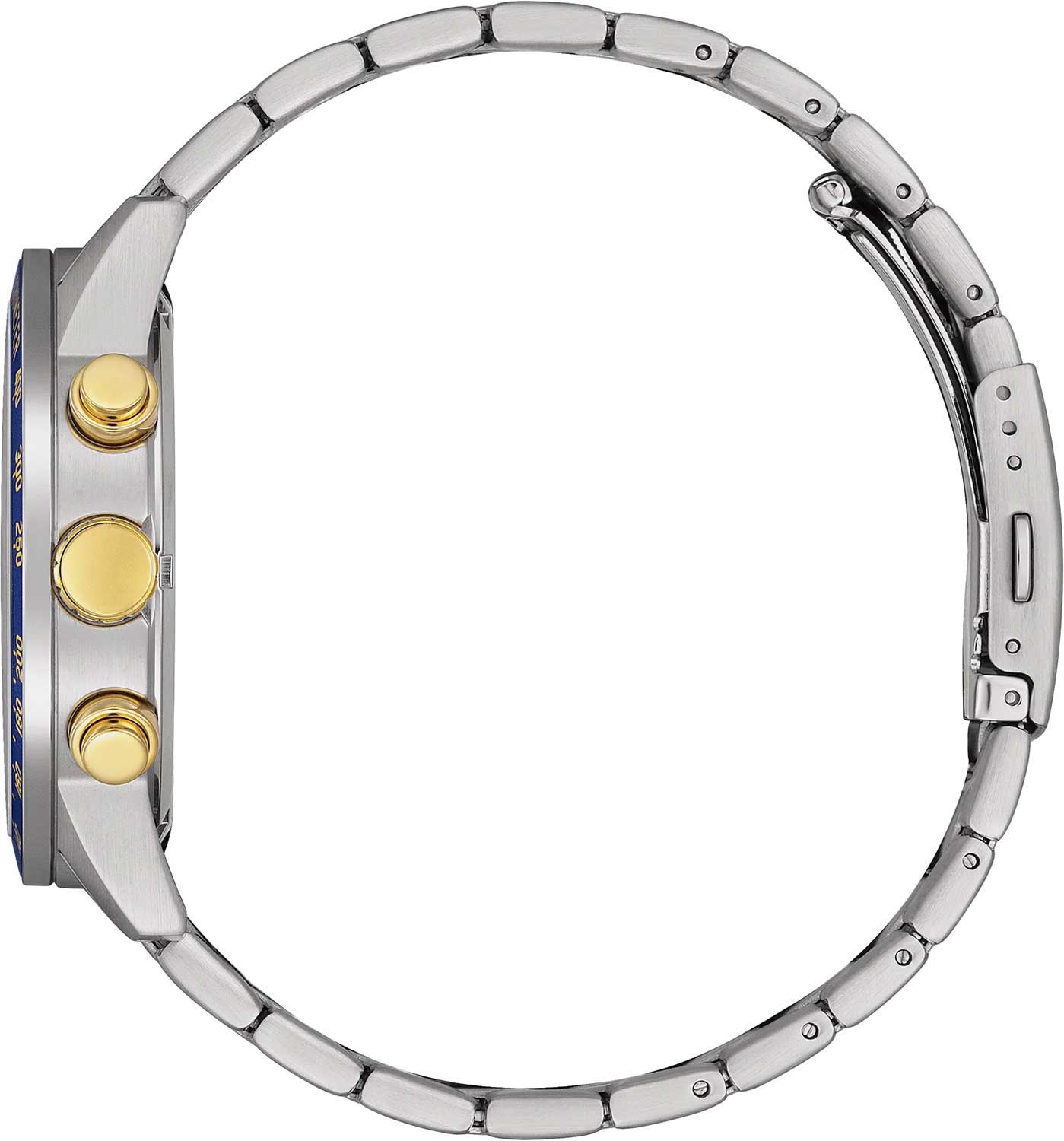 Citizen Chronograph AN3686-53A часы-хронографХронографФункция позволяет измерять отрезки времени с особой точностью: часы, минуты, секунды. Верным признаком хронографа является наличие на циферблате 3 дополнительных окошек-счётчиков. с секундомеромСекундомерСекундоме́р — прибор, способный измерять интервалы времени с точностью до долей секунды. спортивного дизайна с высоким уровнем водозащиты. Корпус из нержавеющей стали диаметром 44 мм идеально сбалансирован. Минеральное стеклоМинеральное стеклоМинеральное стекло представляет собой искусственно выращенный минерал кварца. Такое стекло отличается особой устойчивостью к повреждениям и царапинам. Уступает по некоторым качествам сапфировому стеклу. обеспечивает отличную защиту циферблата от царапин. Часы работают на основе кварцевого механизма. Стальной браслет на раскладной застёжкеРаскладная застёжкаТакой тип застёжки используется только на браслетах из металла. Она никогда не раскрывается полностью, происходит разделение на 2 и более частей. Раскладывающая застёжка снизит вероятность потери часов к минимуму. с частичным IP-покрытиемIP-покрытиеМетод ионного напыления. Демонстрирует повышенную устойчивость к истиранию, окислению и химическим веществам. Под воздействием высокого давления и температуры около 1500°C молекулы металла надёжно соединяются с частицами корпуса часов. идеально дополняют дизайн часов, обеспечивая комфортное ношение. Стрелки и метки на циферблате имеют люминесцентное покрытиеЛюминесцентное покрытиеПозволяет считывать показания времени в темноте. Производители наносят на стрелки, часовые индексы, безель или поверхность циферблата светонакопительный состав, дающий холодное свечение. позволяющее легко определять время даже в темноте. БезельБезельВнешний ободок, закрепляющий стекло. В спортивных часах так называется поворотное кольцо с делениями на циферблате, выполняет роль таймера – замеряет отрезки времени на шкале. Неподвижный безель – элемент декора. Однонаправленно вращающийся безель на дайверских часах позволяет фиксировать моменты погружения и выныривания на поверхность. с IP-покрытиемIP-покрытиеМетод ионного напыления. Демонстрирует повышенную устойчивость к истиранию, окислению и химическим веществам. Под воздействием высокого давления и температуры около 1500°C молекулы металла надёжно соединяются с частицами корпуса часов. и шкалой тахиметраТахиметрРазмеченная шкала, располагается на ободке или безеле часов. Тахиметр позволяет рассчитать скорость на определённом участке пути, расстояние измеряется в километрах или милях.. Секундомер с точностью 1с и временем измерения 12ч отображается центральной стрелкой. Окошко даты находится в положении 3 часа. Циферблат с метками в виде штрихов выполнен по технологии Sunray (солнечные лучи). Часы обладают впечатляющей водонепроницаемостью до 100WR, что делает их идеальными для повседневной носки.
