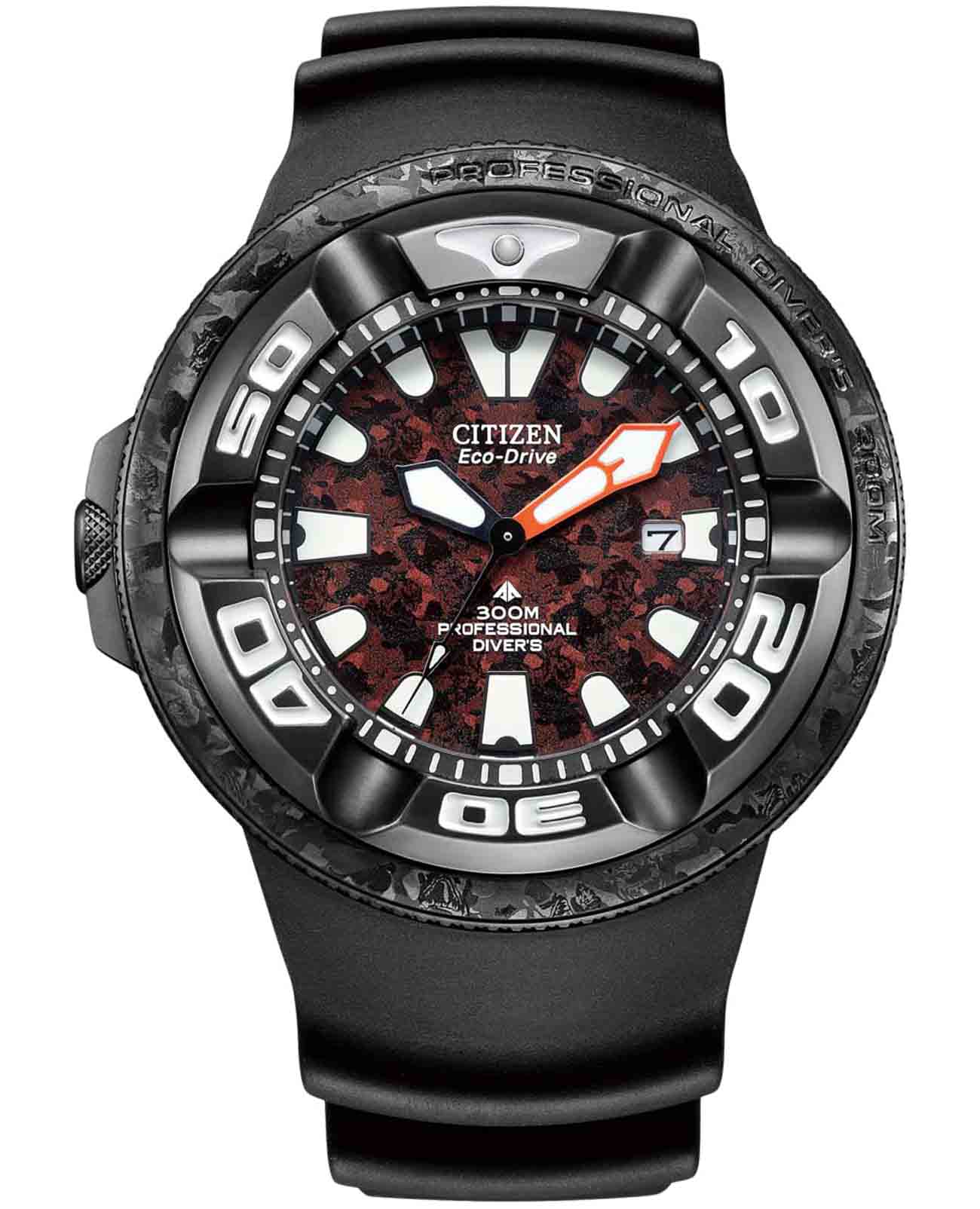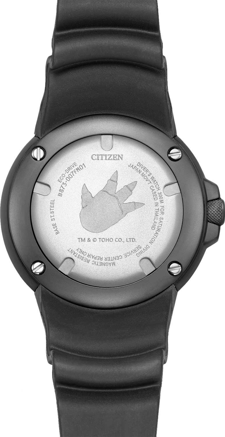 Мужские часы Citizen Promaster BJ8059-03Z спортивного дизайна с высоким уровнем водозащиты. Лимитированная серия - 2500 экземпляров. Корпус из нержавеющей стали с IP-покрытиемIP-покрытиеМетод ионного напыления. Демонстрирует повышенную устойчивость к истиранию, окислению и химическим веществам. Под воздействием высокого давления и температуры около 1500°C молекулы металла надёжно соединяются с частицами корпуса часов. диаметром 48,2 мм идеально сбалансирован. Минеральное стеклоМинеральное стеклоМинеральное стекло представляет собой искусственно выращенный минерал кварца. Такое стекло отличается особой устойчивостью к повреждениям и царапинам. Уступает по некоторым качествам сапфировому стеклу. обеспечивает отличную защиту циферблата от царапин. Часы работают на основе кварцевого механизма, питание от солнечной энергии, запас энергии на 180 дней. Каучуковый ремешок на стандартной застёжке идеально дополняют дизайн часов, обеспечивая комфортное ношение. Стрелки и метки на циферблате имеют люминесцентное покрытиеЛюминесцентное покрытиеПозволяет считывать показания времени в темноте. Производители наносят на стрелки, часовые индексы, безель или поверхность циферблата светонакопительный состав, дающий холодное свечение. позволяющее легко определять время даже в темноте. БезельБезельВнешний ободок, закрепляющий стекло. В спортивных часах так называется поворотное кольцо с делениями на циферблате, выполняет роль таймера – замеряет отрезки времени на шкале. Неподвижный безель – элемент декора. Однонаправленно вращающийся безель на дайверских часах позволяет фиксировать моменты погружения и выныривания на поверхность. вращается в одном направлении. Функция индикации заряда (EOL) и предотвращения перезарядки. Окошко даты находится в положении 3 часа. Часы обладают впечатляющей водонепроницаемостью до 300WR, что делает их идеальными для плавания, ныряния и погружений с аквалангом. Модель вдохновлена персонажем из комиксов, мультфильмов и кинофильмов монстром Годзилла, которому в 2024 году исполняется 70 лет.