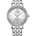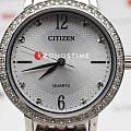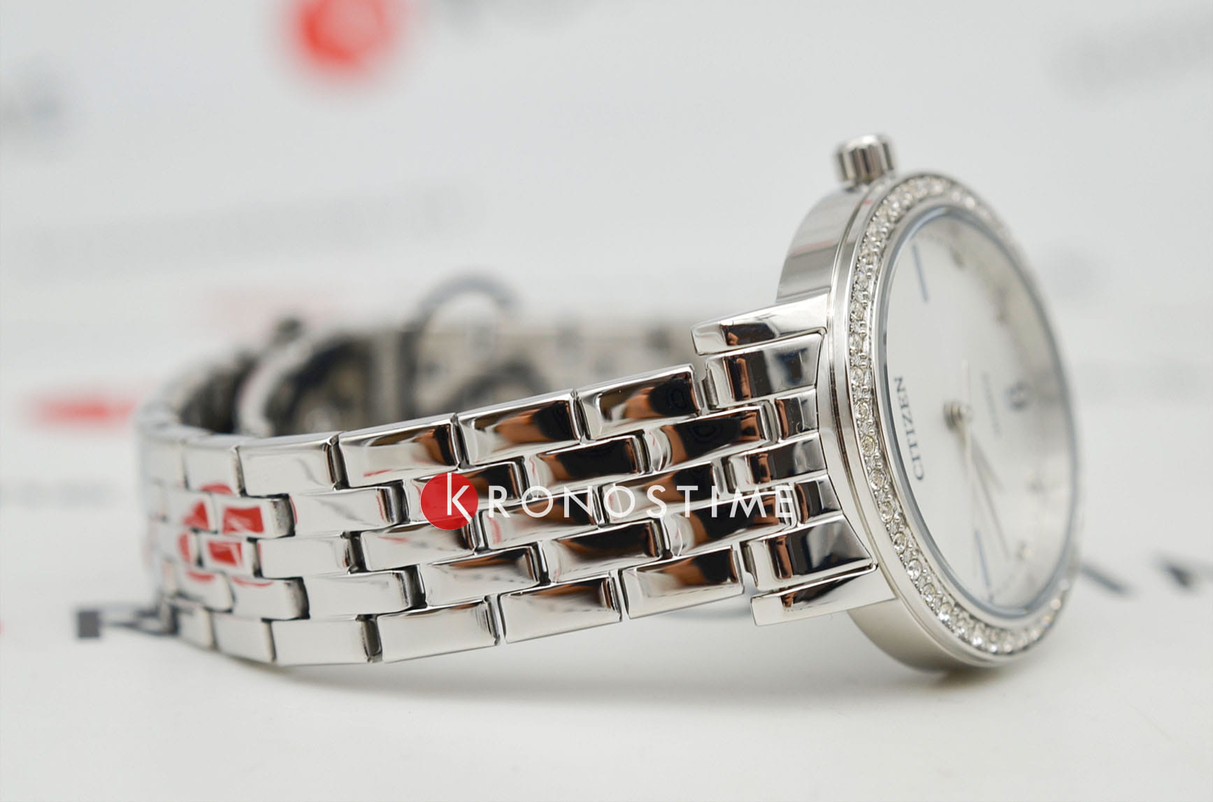 Часы Citizen EL3100-55A представляют собой элегантную модель, выполненную в Японии, сочетающую в себе современные технологии и утончённый дизайн. Корпус и браслет изготовлены из прочной нержавеющей стали, что обеспечивает долговечность и привлекательный внешний вид. Диаметр корпуса составляет 31 мм, а толщина — всего 7 мм, что делает часы изящными и аккуратными на запястье. Особое внимание привлекает безельБезельВнешний ободок, закрепляющий стекло. В спортивных часах так называется поворотное кольцо с делениями на циферблате, выполняет роль таймера – замеряет отрезки времени на шкале. Неподвижный безель – элемент декора. Однонаправленно вращающийся безель на дайверских часах позволяет фиксировать моменты погружения и выныривания на поверхность., украшенный мерцающими кристаллами, которые придают часам особый шарм и изысканность. Надёжный кварцевый механизм гарантирует точность хода, а водозащита уровня WR 50 позволяет не снимать часы при мытье рук или во время дождя. Циферблат украшен часовыми индексами в виде точек и цифр, а также оснащён центральными стрелками часов, минут и секунд для удобного считывания времени и кристаллами. Минеральное стеклоМинеральное стеклоМинеральное стекло представляет собой искусственно выращенный минерал кварца. Такое стекло отличается особой устойчивостью к повреждениям и царапинам. Уступает по некоторым качествам сапфировому стеклу. устойчиво к появлению мелких царапин, сохраняя прозрачность и презентабельный вид. Стальной браслет с раскладной застёжкойРаскладная застёжкаТакой тип застёжки используется только на браслетах из металла. Она никогда не раскрывается полностью, происходит разделение на 2 и более частей. Раскладывающая застёжка снизит вероятность потери часов к минимуму. надежно фиксирует часы на запястье, обеспечивая комфорт при ежедневном ношении.