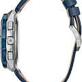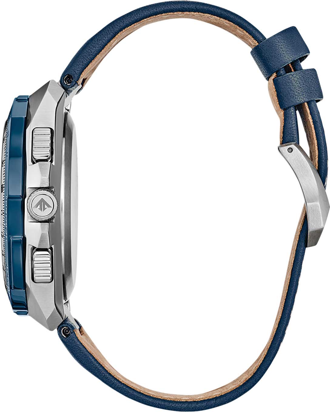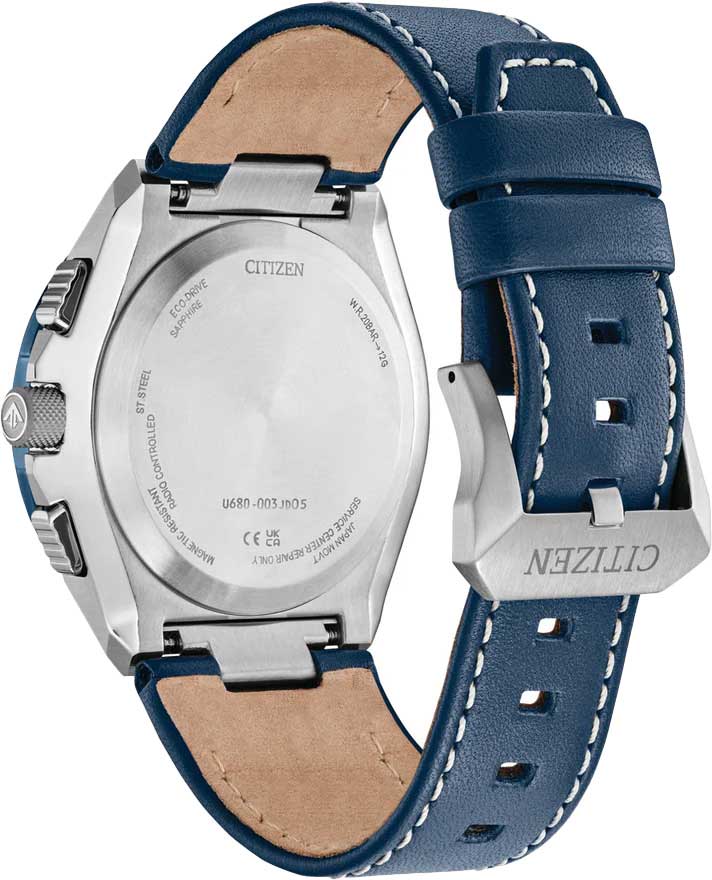 Citizen Promaster JY8148-08L часы-хронографХронографФункция позволяет измерять отрезки времени с особой точностью: часы, минуты, секунды. Верным признаком хронографа является наличие на циферблате 3 дополнительных окошек-счётчиков. с секундомеромСекундомерСекундоме́р — прибор, способный измерять интервалы времени с точностью до долей секунды. спортивного дизайна с высоким уровнем водозащиты. Корпус из нержавеющей стали диаметром 45,7 мм идеально сбалансирован. Сапфировое стеклоСапфировое стеклоПрочный и надёжный материал из кристалла сапфира синтетического происхождения, характеризующийся особой твёрдостью и устойчивостью к царапинам и повреждениям. с антибликовым покрытием обеспечивает отличную защиту циферблата от царапин. Часы работают на основе кварцевого механизма, питание от солнечной энергии. Кожаный ремешок на стандартной застёжке идеально дополняют дизайн часов, обеспечивая комфортное ношение. Стрелки и метки на циферблате имеют люминесцентное покрытиеЛюминесцентное покрытиеПозволяет считывать показания времени в темноте. Производители наносят на стрелки, часовые индексы, безель или поверхность циферблата светонакопительный состав, дающий холодное свечение. позволяющее легко определять время даже в темноте. Поворотный безельБезельВнешний ободок, закрепляющий стекло. В спортивных часах так называется поворотное кольцо с делениями на циферблате, выполняет роль таймера – замеряет отрезки времени на шкале. Неподвижный безель – элемент декора. Однонаправленно вращающийся безель на дайверских часах позволяет фиксировать моменты погружения и выныривания на поверхность. с IP-покрытиемIP-покрытиеМетод ионного напыления. Демонстрирует повышенную устойчивость к истиранию, окислению и химическим веществам. Под воздействием высокого давления и температуры около 1500°C молекулы металла надёжно соединяются с частицами корпуса часов.. Автоматический прием сигналов от радиовышек, расположенных в различных точках земного шара, которые передают временные сигналы от определенных атомных часов. Коррекция текущего времени радиосигналом на территории почти всей Европы, США, Японии и Китая. Функция индикации заряда (EOL) и предотвращения перезарядки. Мировое времяМировое время Полезное часовое усложнение, отображающее время в основных городах и известных областях по всему миру, оно связано с часовыми поясами, удобно для путешественников и бизнесменов. - 43 города, переход на зимнее и летнее время. Всемирное координированное время UTCUTCВсемирное кординационное время, не имеющее привязки к географическому положению Гринвича, основывается на атомном отсчёте времени. Регулировка времени осуществляется более точно, чем устаревшее GMT.