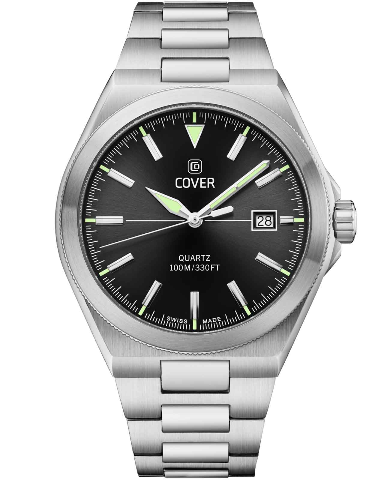 Cover CO213.01 – элегантные мужские часы, сочетающие классический дизайн и современные технологии. Корпус диаметром 41 мм выполнен из нержавеющей стали 316L, что обеспечивает прочность и долговечность. Циферблат с чёткими часовыми метками и стрелками, покрытыми люминесцентным покрытиемЛюминесцентное покрытиеПозволяет считывать показания времени в темноте. Производители наносят на стрелки, часовые индексы, безель или поверхность циферблата светонакопительный состав, дающий холодное свечение., гарантирует отличную читаемость в любых условиях, а его поверхность защищена сапфировым стекломСапфировое стеклоПрочный и надёжный материал из кристалла сапфира синтетического происхождения, характеризующийся особой твёрдостью и устойчивостью к царапинам и повреждениям., устойчивым к царапинам.