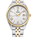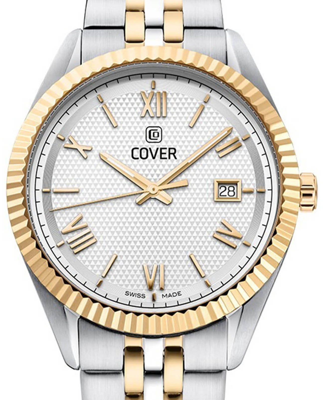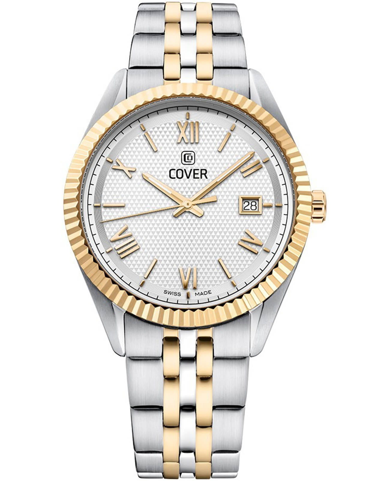 Cover Alston CO216.06 – элегантные мужские часы, сочетающие современный стиль и классическую элегантность. Корпус диаметром 40 мм выполнен из нержавеющей стали, что обеспечивает прочность и долговечность. Циферблат серебристого цвета с тонким треугольным узором придаёт часам изысканный вид, а его поверхность защищена  минеральным стекломМинеральное стеклоМинеральное стекло представляет собой искусственно выращенный минерал кварца. Такое стекло отличается особой устойчивостью к повреждениям и царапинам. Уступает по некоторым качествам сапфировому стеклу.. Часы оснащены швейцарским кварцевым механизмом, обеспечивающим точный ход и надёжность. Функциональность дополняется окошком даты, расположенным на позиции «3 часа». Браслет и безельБезельВнешний ободок, закрепляющий стекло. В спортивных часах так называется поворотное кольцо с делениями на циферблате, выполняет роль таймера – замеряет отрезки времени на шкале. Неподвижный безель – элемент декора. Однонаправленно вращающийся безель на дайверских часах позволяет фиксировать моменты погружения и выныривания на поверхность. изготовлены из нержавеющей стали с PVDPVDУльтратонкое покрытие наносится в технике вакуумного напыления, сочетает в себе нитрид титана особой прочности со слоем золота или оксида хрома. Несёт в себе декоративную или защитную функцию. покрытием, также браслет оснащён раскладной застёжкойРаскладная застёжкаТакой тип застёжки используется только на браслетах из металла. Она никогда не раскрывается полностью, происходит разделение на 2 и более частей. Раскладывающая застёжка снизит вероятность потери часов к минимуму., обеспечивающей удобную и надёжную фиксацию на запястье. Водонепроницаемость до 50 метров (5 ATM) позволяет использовать часы в повседневной жизни, защищая их от случайных брызг и дождя.
