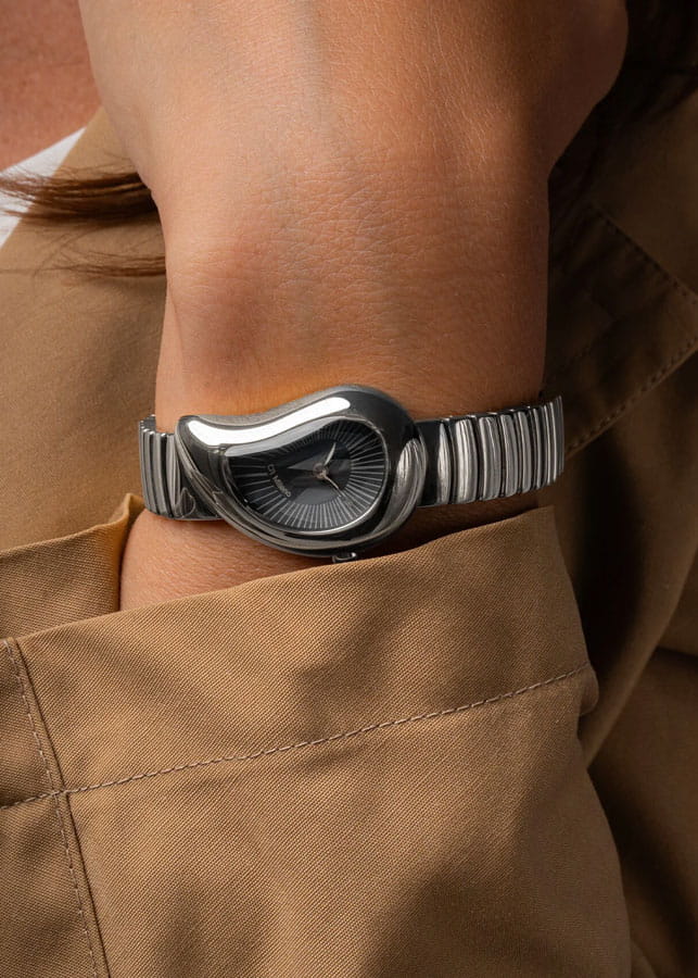 Женские кварцевые часы D1 Milano Drop DRBL01 — это стильное сочетание элегантности и современного дизайна. Стальной корпус в форме капли выполнен из нержавеющей стали серебристого цвета, диаметром 23 мм, что придаст образу элегантности и надежности. Изысканный циферблат с метками в виде штрихов придает модели особый блеск. Циферблат защищен сапфировым стекломСапфировое стеклоПрочный и надёжный материал из кристалла сапфира синтетического происхождения, характеризующийся особой твёрдостью и устойчивостью к царапинам и повреждениям. с антибликовым покрытиемАнтибликовое покрытиеСлой оксида металла в 0,13-0,3 микрон, благодаря которому стекло часов не бликует и не отражает свет. Антибликовое покрытие уменьшает отражение света в 10 раз, обеспечивая отличную читаемость показателей циферблата., обеспечивающий устойчивость к царапинам. Часы оснащены надежным кварцевым механизмом. Стальной браслет на застёжке-бабочке с кнопкамиЗастёжка "бабочка"Такой вид застёжки дополняется предохранителями, помогающими избежать случайного раскрытия браслета. Обладают изящным исполнением. , гарантирует комфортное и безопасное ношение. Класс водозащиты: 50 метров позволит защитить корпус от случайных брызг или капель дождя. Отличный выбор для тех, кто ценит утонченность и качество.