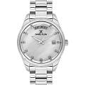 Женские кварцевые часы Daniel Klein — это обворожительный аксессуар, сочетающий стиль и безупречность. Корпус диаметром 34 мм выполнен из нержавеющей стали. Циферблат перламутрового белого цвета оформлен точками с кристаллами и стрелками. Окошко дня недели расположено в положении 12 часов, окошко даты — в положении 3 часов. Стрелки с люминесцентным покрытиемЛюминесцентное покрытиеПозволяет считывать показания времени в темноте. Производители наносят на стрелки, часовые индексы, безель или поверхность циферблата светонакопительный состав, дающий холодное свечение., обеспечивающим хорошую читаемость в темноте. Циферблат защищён минеральным стекломМинеральное стеклоМинеральное стекло представляет собой искусственно выращенный минерал кварца. Такое стекло отличается особой устойчивостью к повреждениям и царапинам. Уступает по некоторым качествам сапфировому стеклу.. Часы оснащены стальным браслетом на раскладной застёжкеРаскладная застёжкаТакой тип застёжки используется только на браслетах из металла. Она никогда не раскрывается полностью, происходит разделение на 2 и более частей. Раскладывающая застёжка снизит вероятность потери часов к минимуму.. Водонепроницаемость 30 м позволяет использовать часы в повседневных условиях. Идеальный выбор для тех, кто ценит турецкое качество и элегантный дизайн.