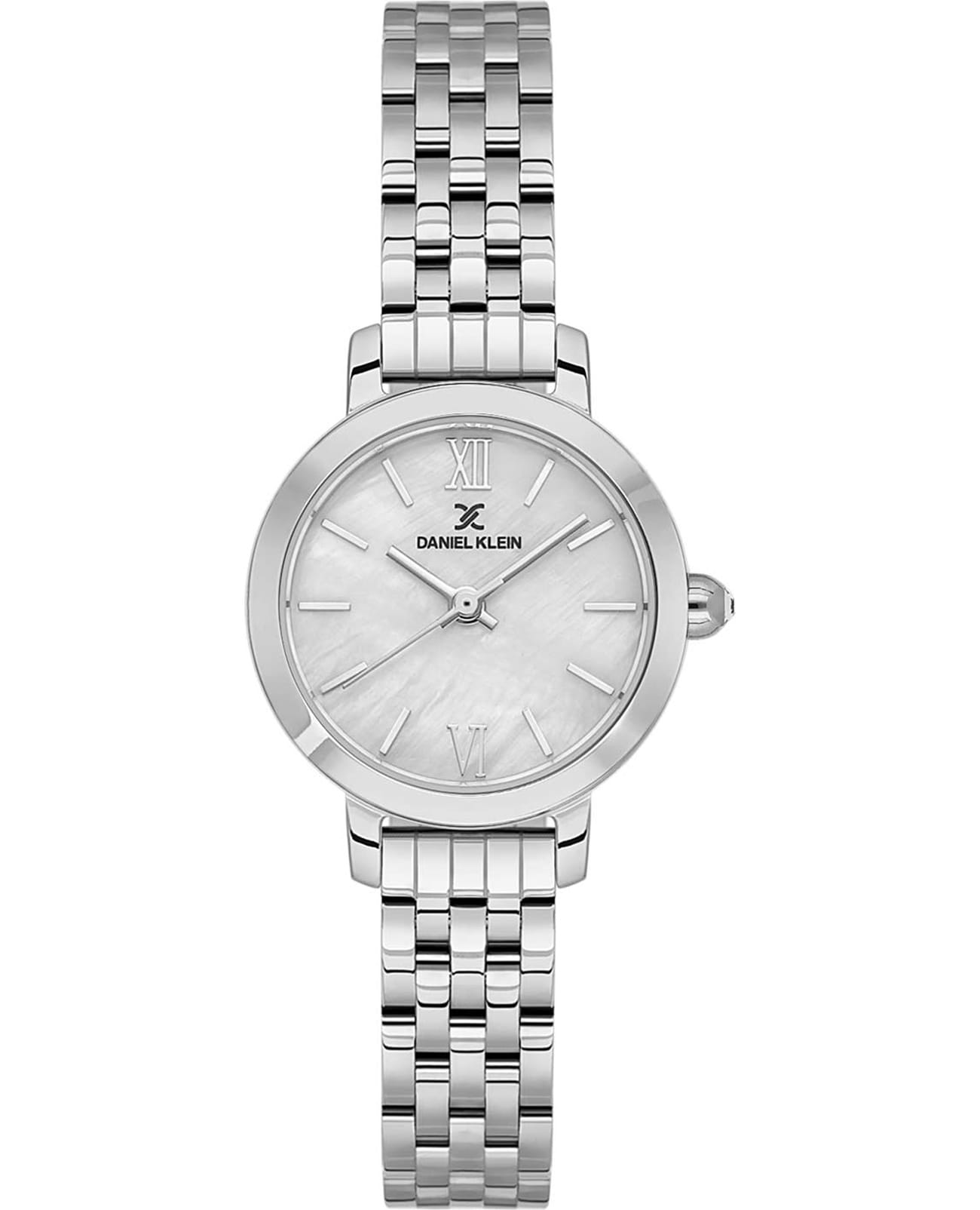 Женские кварцевые часы Daniel Klein — это изысканный аксессуар для настоящей леди. Корпус диаметром 26 мм выполнен из нержавеющей стали. Циферблат перламутрового белого цвета оформлен штрихами, римскими цифрами VI и XII и стрелками. Циферблат защищён минеральным стекломМинеральное стеклоМинеральное стекло представляет собой искусственно выращенный минерал кварца. Такое стекло отличается особой устойчивостью к повреждениям и царапинам. Уступает по некоторым качествам сапфировому стеклу.. Часы оснащены стальным браслетом на раскладной застёжкеРаскладная застёжкаТакой тип застёжки используется только на браслетах из металла. Она никогда не раскрывается полностью, происходит разделение на 2 и более частей. Раскладывающая застёжка снизит вероятность потери часов к минимуму.. Водонепроницаемость 30 м позволяет использовать часы в повседневных условиях. Идеальный выбор для тех, кто ценит турецкое качество и элегантный дизайн.