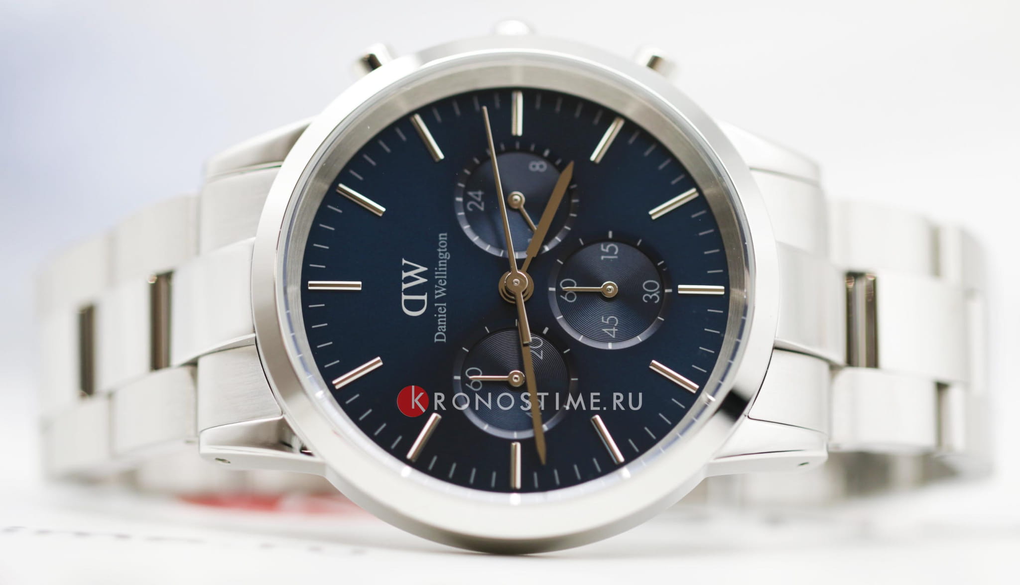 Мужские наручные часы-хронографХронографФункция позволяет измерять отрезки времени с особой точностью: часы, минуты, секунды. Верным признаком хронографа является наличие на циферблате 3 дополнительных окошек-счётчиков. с минеральным стекломМинеральное стеклоМинеральное стекло представляет собой искусственно выращенный минерал кварца. Такое стекло отличается особой устойчивостью к повреждениям и царапинам. Уступает по некоторым качествам сапфировому стеклу. Daniel Wellington Daniel Wellington Iconic Link Arctic DW00100644, кварцевый механизм с высокой точностью. Корпус часов изготовлен из стали. Циферблат украшен фирменным логотипом Daniel Wellington. Накладные метки в виде штрихов. Рифленая заводная головка. Класс водозащиты: 50 метров, позволит защитить корпус от случайных брызг или капель дождя. Стальной браслет на застёжке-бабочке с кнопкамиЗастёжка "бабочка"Такой вид застёжки дополняется предохранителями, помогающими избежать случайного раскрытия браслета. Обладают изящным исполнением. .