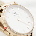 Женские наручные часы с минеральным стекломМинеральное стеклоМинеральное стекло представляет собой искусственно выращенный минерал кварца. Такое стекло отличается особой устойчивостью к повреждениям и царапинам. Уступает по некоторым качествам сапфировому стеклу. Daniel Wellington Petite DW00100666, кварцевый механизм с высокой точностью. Корпус часов изготовлен из стали с PVD-покрытиемPVDУльтратонкое покрытие наносится в технике вакуумного напыления, сочетает в себе нитрид титана особой прочности со слоем золота или оксида хрома. Несёт в себе декоративную или защитную функцию.. БезельБезельВнешний ободок, закрепляющий стекло. В спортивных часах так называется поворотное кольцо с делениями на циферблате, выполняет роль таймера – замеряет отрезки времени на шкале. Неподвижный безель – элемент декора. Однонаправленно вращающийся безель на дайверских часах позволяет фиксировать моменты погружения и выныривания на поверхность. с PVD-покрытиемPVDУльтратонкое покрытие наносится в технике вакуумного напыления, сочетает в себе нитрид титана особой прочности со слоем золота или оксида хрома. Несёт в себе декоративную или защитную функцию. украшен кристаллами Swarovski. Матовый циферблат украшен фирменным логотипом Daniel Wellington. Накладные метки в виде штрихов. Японский кварцевый механизм. Рифленая заводная головка. Класс водозащиты: 30 метров, позволит защитить корпус от случайных брызг или капель дождя. Стальной браслет с PVD-покрытиемPVDУльтратонкое покрытие наносится в технике вакуумного напыления, сочетает в себе нитрид титана особой прочности со слоем золота или оксида хрома. Несёт в себе декоративную или защитную функцию. на застёжке-бабочке с кнопкамиЗастёжка "бабочка"Такой вид застёжки дополняется предохранителями, помогающими избежать случайного раскрытия браслета. Обладают изящным исполнением. .