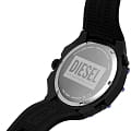 Мужские наручные часы Diesel Framed DZ1986, кварцевый механизм с высокой точностью. Класс водозащиты: 50 метров, позволит защитить корпус от случайных брызг или капель дождя. Корпус часов изготовлен полимера черного цвета со стальными вставками с PVD-покрытиемPVDУльтратонкое покрытие наносится в технике вакуумного напыления, сочетает в себе нитрид титана особой прочности со слоем золота или оксида хрома. Несёт в себе декоративную или защитную функцию.. Рифленая заводная головка. Минеральное стеклоМинеральное стеклоМинеральное стекло представляет собой искусственно выращенный минерал кварца. Такое стекло отличается особой устойчивостью к повреждениям и царапинам. Уступает по некоторым качествам сапфировому стеклу.. Стальная задняя крышка крепится на 4-х винтах.