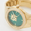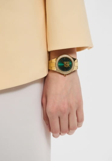 DKNY Parsons Glitz DK1L025M0055 воплощают в себе шик и изысканность. Корпус из нержавеющей стали диаметром 38 мм и минеральное стеклоМинеральное стеклоМинеральное стекло представляет собой искусственно выращенный минерал кварца. Такое стекло отличается особой устойчивостью к повреждениям и царапинам. Уступает по некоторым качествам сапфировому стеклу. обеспечивает защиту от царапин, а водонепроницаемость до 50 метров делает модель практичной для активного отдыха или повседневной носки. Браслет из нержавеющей стали с IP-покрытиемIP-покрытиеМетод ионного напыления. Демонстрирует повышенную устойчивость к истиранию, окислению и химическим веществам. Под воздействием высокого давления и температуры около 1500°C молекулы металла надёжно соединяются с частицами корпуса часов. на раскладной застёжкеРаскладная застёжкаТакой тип застёжки используется только на браслетах из металла. Она никогда не раскрывается полностью, происходит разделение на 2 и более частей. Раскладывающая застёжка снизит вероятность потери часов к минимуму. надежно фиксирует часы на руке и подчёркивает женственность дизайна. БезельБезельВнешний ободок, закрепляющий стекло. В спортивных часах так называется поворотное кольцо с делениями на циферблате, выполняет роль таймера – замеряет отрезки времени на шкале. Неподвижный безель – элемент декора. Однонаправленно вращающийся безель на дайверских часах позволяет фиксировать моменты погружения и выныривания на поверхность. инкрустирован кристаллами. Эта модель станет идеальным дополнением вашего гардероба, подчеркнув индивидуальный стиль.