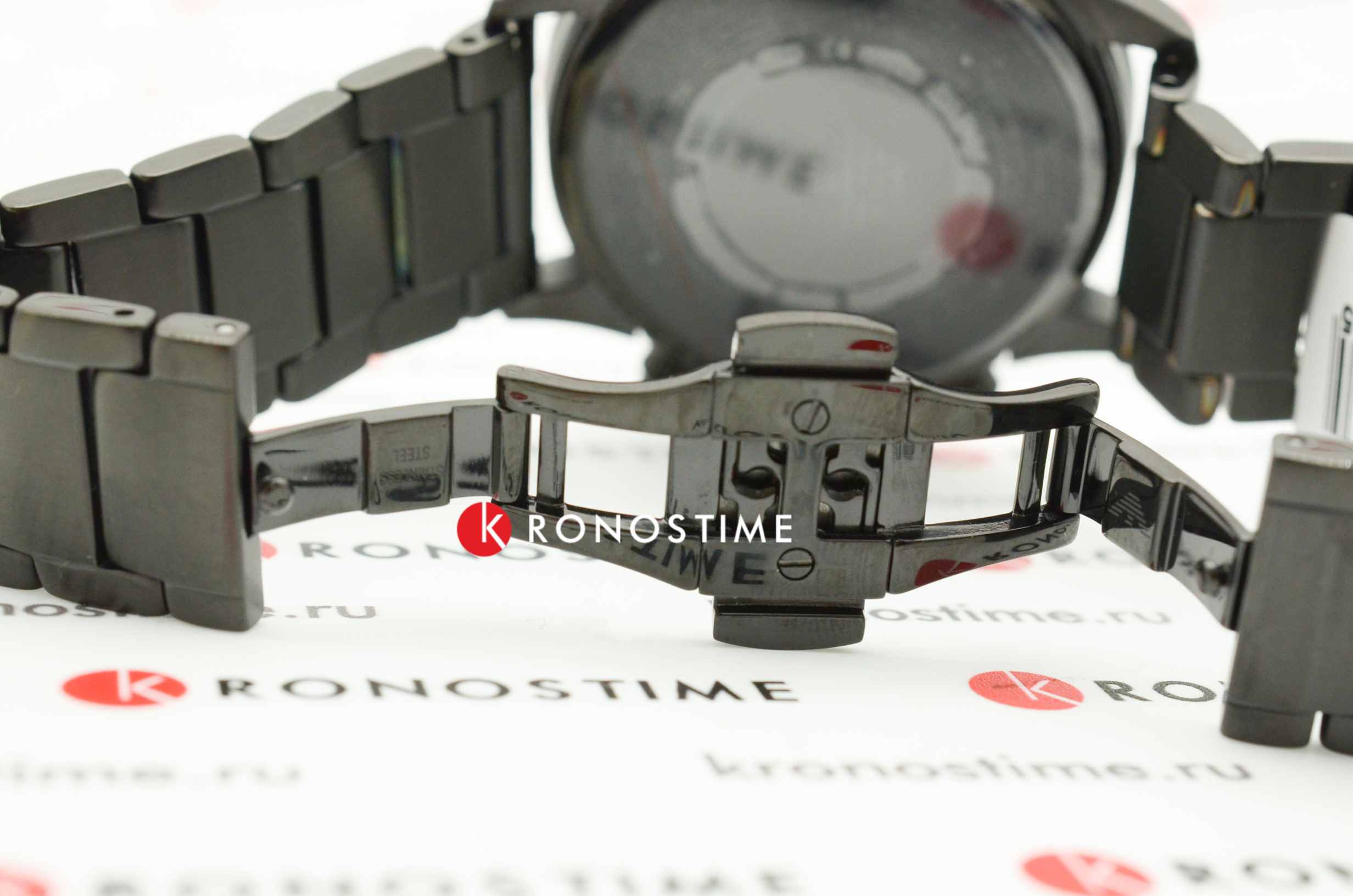 Компактный аксессуар никогда не утратит актуальности, модель с fashion-элементами идеальна для офисного дресс-кода. Точность хода +/- 20 секунд в месяц обеспечивается кварцевым калибром Claro швейцарского производства. Стрелки имеют люминесцентную подсветкуЛюминесцентное покрытиеПозволяет считывать показания времени в темноте. Производители наносят на стрелки, часовые индексы, безель или поверхность циферблата светонакопительный состав, дающий холодное свечение.. Минеральное стекло отличается надёжностью и устойчивостью к появлению царапин. Чёрное IP-покрытиеIP-покрытиеМетод ионного напыления. Демонстрирует повышенную устойчивость к истиранию, окислению и химическим веществам. Под воздействием высокого давления и температуры около 1500°C молекулы металла надёжно соединяются с частицами корпуса часов. корпуса и браслета. Отображение текущего числа, тахиметрТахиметрРазмеченная шкала, располагается на ободке или безеле часов. Тахиметр позволяет рассчитать скорость на определённом участке пути, расстояние измеряется в километрах или милях., секундомер, хронографХронографФункция позволяет измерять отрезки времени с особой точностью: часы, минуты, секунды. Верным признаком хронографа является наличие на циферблате 3 дополнительных окошек-счётчиков.. Диаметр корпуса: 43 мм.