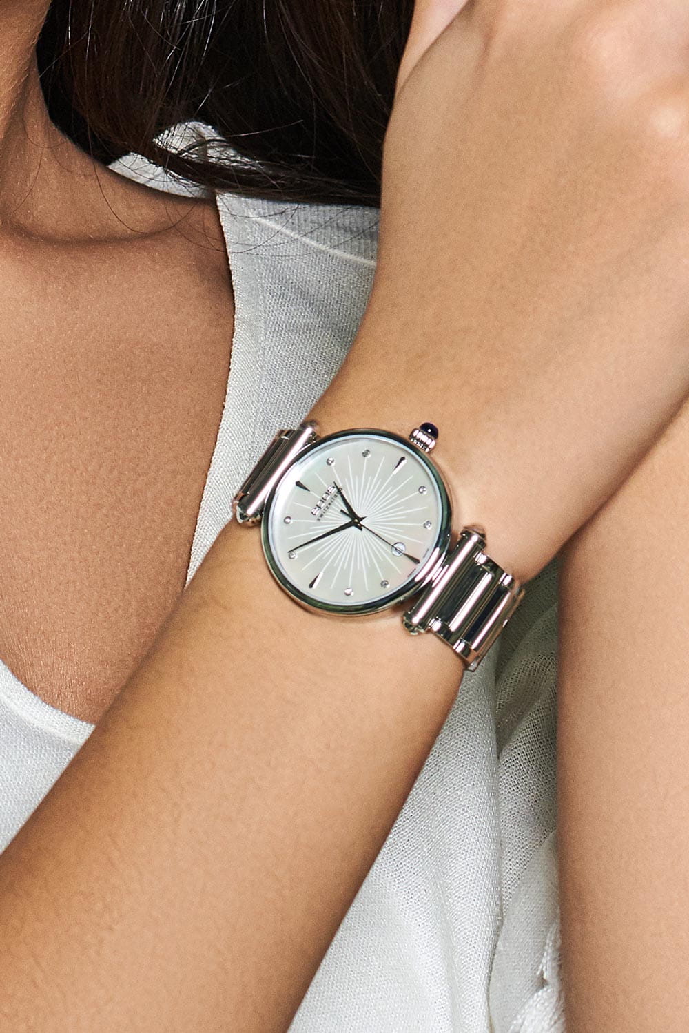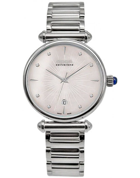 Женские швейцарские наручные часы с кварцевым механизмом с высокой точностью. Сапфировое стеклоСапфировое стеклоПрочный и надёжный материал из кристалла сапфира синтетического происхождения, характеризующийся особой твёрдостью и устойчивостью к царапинам и повреждениям. устойчивое к появлению царапин, обладающее высокой прозрачностью. Класс водозащиты: 30 метров, позволит защитить корпус от случайных брызг или капель дождя. Корпус часов изготовлен из стали. Браслет с застёжкой «бабочка» с кнопкамиЗастёжка "бабочка"Такой вид застёжки дополняется предохранителями, помогающими избежать случайного раскрытия браслета. Обладают изящным исполнением. .