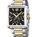 Эксклюзивный хронографХронографФункция позволяет измерять отрезки времени с особой точностью: часы, минуты, секунды. Верным признаком хронографа является наличие на циферблате 3 дополнительных окошек-счётчиков. с секундомеромСекундомерСекундоме́р — прибор, способный измерять интервалы времени с точностью до долей секунды. отличающийся продуманным дизайном и отделкой, придется по вкусу мужчинам, ценящим идеальное соотношение цены и качества. Минеральное стеклоМинеральное стеклоМинеральное стекло представляет собой искусственно выращенный минерал кварца. Такое стекло отличается особой устойчивостью к повреждениям и царапинам. Уступает по некоторым качествам сапфировому стеклу. устойчивое к появлению царапин, обладающее высокой прозрачностью. Циферблат с люминесцентным покрытиемЛюминесцентное покрытиеПозволяет считывать показания времени в темноте. Производители наносят на стрелки, часовые индексы, безель или поверхность циферблата светонакопительный состав, дающий холодное свечение. стрелок и меток.  Корпус из нержавеющей стали и браслет с  частичным PVDPVDУльтратонкое покрытие наносится в технике вакуумного напыления, сочетает в себе нитрид титана особой прочности со слоем золота или оксида хрома. Несёт в себе декоративную или защитную функцию. покрытием. Класс водозащиты: 50 метров, позволит защитить корпус от случайных брызг или капель дождя. Браслет с раскладной застёжкойРаскладная застёжкаТакой тип застёжки используется только на браслетах из металла. Она никогда не раскрывается полностью, происходит разделение на 2 и более частей. Раскладывающая застёжка снизит вероятность потери часов к минимуму.. Ширина браслета 28,95мм.