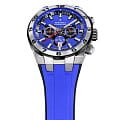 Часы-хронографХронографФункция позволяет измерять отрезки времени с особой точностью: часы, минуты, секунды. Верным признаком хронографа является наличие на циферблате 3 дополнительных окошек-счётчиков.. Кварцевый механизм с высокой точностью. Минеральное стеклоМинеральное стеклоМинеральное стекло представляет собой искусственно выращенный минерал кварца. Такое стекло отличается особой устойчивостью к повреждениям и царапинам. Уступает по некоторым качествам сапфировому стеклу. устойчивое к появлению царапин, обладающее высокой прозрачностью. Класс водозащиты: 100 метров, позволит плавать, нырять и заниматься другими водными видами спорта. Безель c PVD-покрытиемPVDУльтратонкое покрытие наносится в технике вакуумного напыления, сочетает в себе нитрид титана особой прочности со слоем золота или оксида хрома. Несёт в себе декоративную или защитную функцию.. Стрелки и метки с люминесцентным покрытиемЛюминесцентное покрытиеПозволяет считывать показания времени в темноте. Производители наносят на стрелки, часовые индексы, безель или поверхность циферблата светонакопительный состав, дающий холодное свечение.. Корпус часов изготовлен из нержавеющей стали. Каучуковый ремешок.