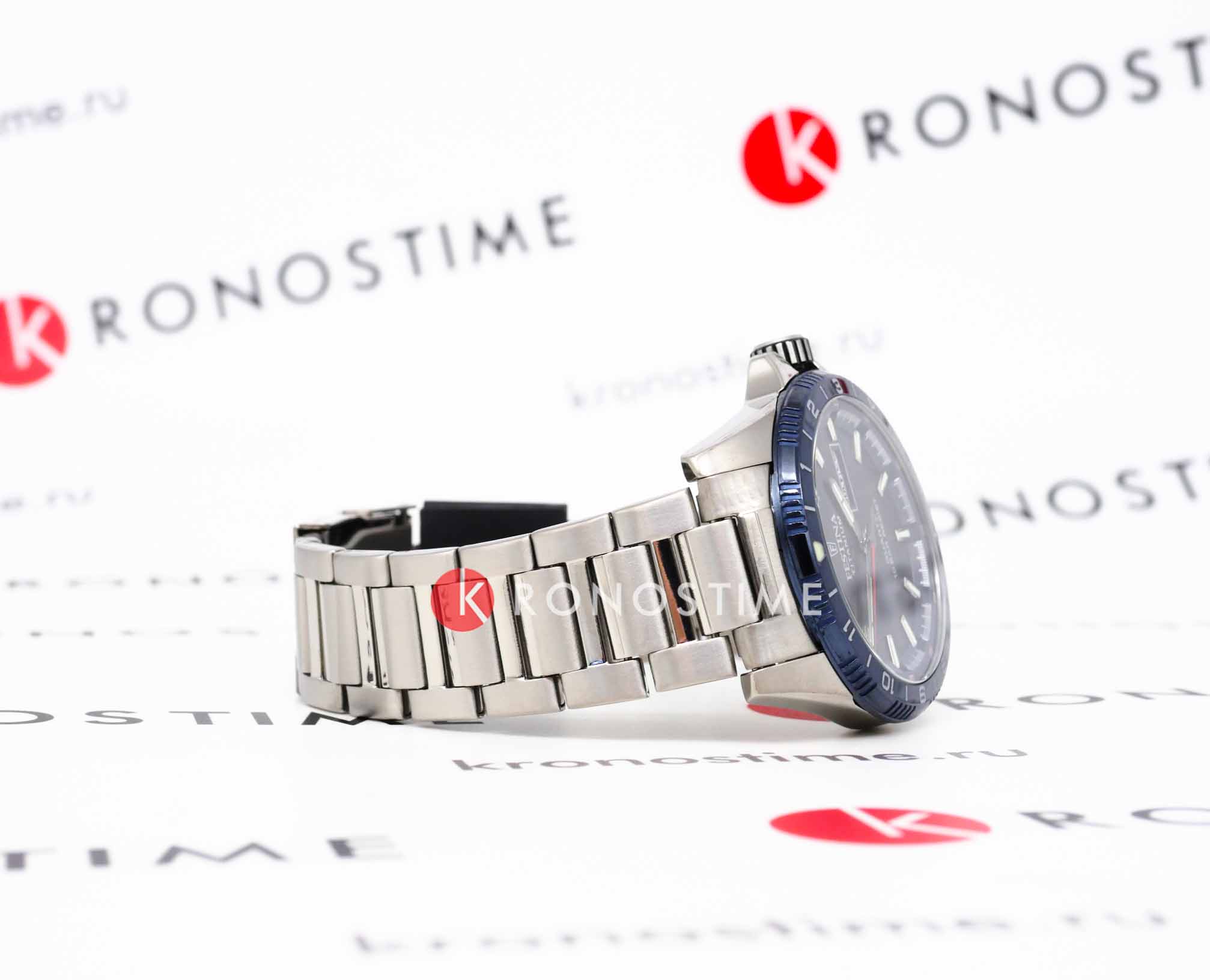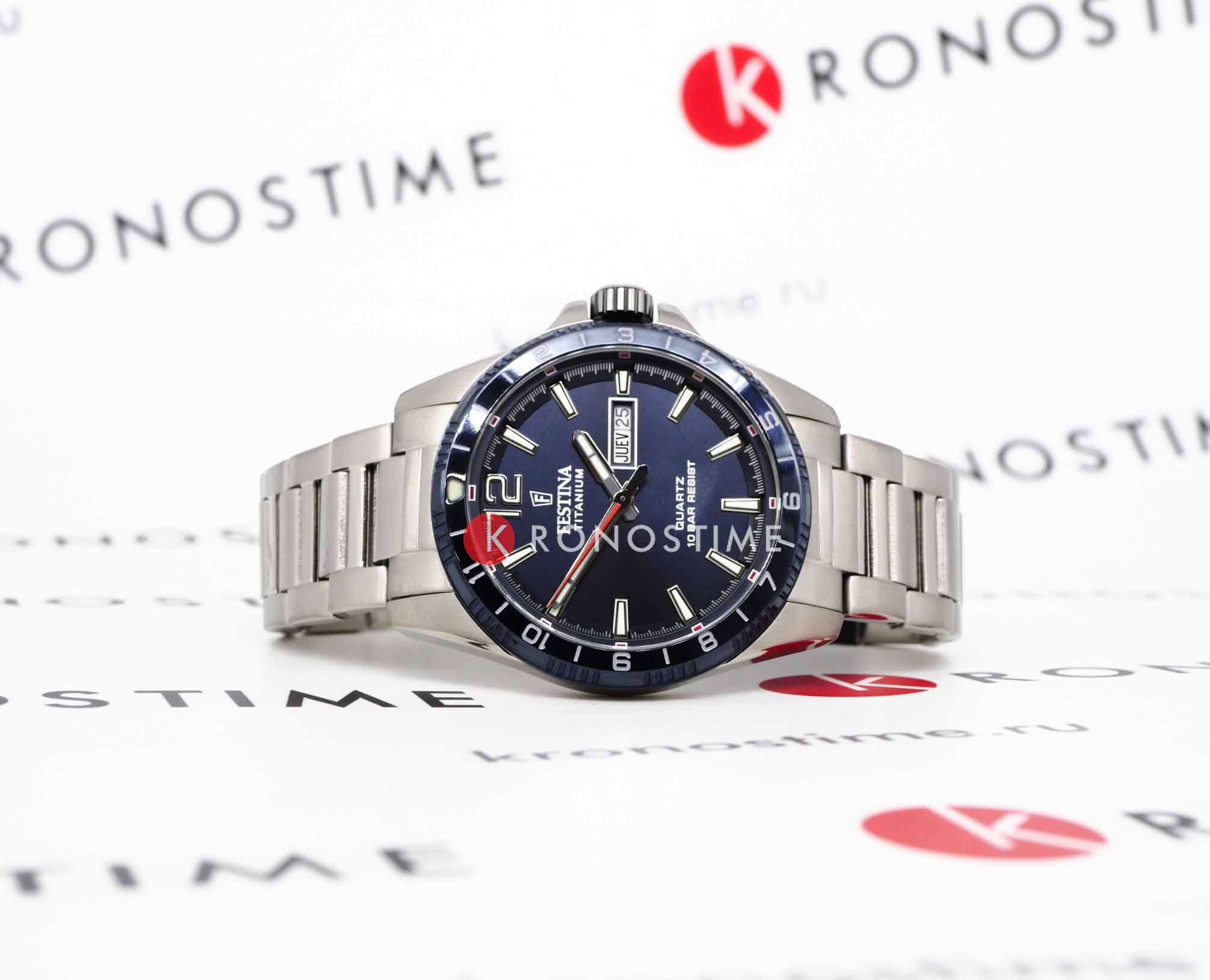 Титановые наручные часы Festina Titanium F20698/2 имеют кварцевый механизм с высокой точностью. Минеральное стеклоМинеральное стеклоМинеральное стекло представляет собой искусственно выращенный минерал кварца. Такое стекло отличается особой устойчивостью к повреждениям и царапинам. Уступает по некоторым качествам сапфировому стеклу. устойчивое к появлению царапин, обладающее высокой прозрачностью, защищает синий циферблат. БезельБезельВнешний ободок, закрепляющий стекло. В спортивных часах так называется поворотное кольцо с делениями на циферблате, выполняет роль таймера – замеряет отрезки времени на шкале. Неподвижный безель – элемент декора. Однонаправленно вращающийся безель на дайверских часах позволяет фиксировать моменты погружения и выныривания на поверхность. с часовыми метками выполнен из нержавеющей стали с синим PVDPVDУльтратонкое покрытие наносится в технике вакуумного напыления, сочетает в себе нитрид титана особой прочности со слоем золота или оксида хрома. Несёт в себе декоративную или защитную функцию. покрытием. Класс водозащиты: 100 метров, позволит плавать, нырять и заниматься другими водными видами спорта. Корпус часов изготовлен из титана, браслет также изготовлен из титана и имеет раскладную застёжкуРаскладная застёжкаТакой тип застёжки используется только на браслетах из металла. Она никогда не раскрывается полностью, происходит разделение на 2 и более частей. Раскладывающая застёжка снизит вероятность потери часов к минимуму.. Люминесцентное покрытиеЛюминесцентное покрытиеПозволяет считывать показания времени в темноте. Производители наносят на стрелки, часовые индексы, безель или поверхность циферблата светонакопительный состав, дающий холодное свечение. на стрелках и метках обеспечивает отличную видимость в темноте, а окошко даты с днем недели, расположенное в позиции 3 часа, добавляет практичности.