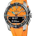 Мужские гибридные умные часы Festina Connected D — это современный аксессуар, сочетающий классический аналоговый дизайн и передовые технологии. Корпус диаметром 44 мм выполнен из лёгкого титана. БезельБезельВнешний ободок, закрепляющий стекло. В спортивных часах так называется поворотное кольцо с делениями на циферблате, выполняет роль таймера – замеряет отрезки времени на шкале. Неподвижный безель – элемент декора. Однонаправленно вращающийся безель на дайверских часах позволяет фиксировать моменты погружения и выныривания на поверхность. с IP-покрытиемIP-покрытиеМетод ионного напыления. Демонстрирует повышенную устойчивость к истиранию, окислению и химическим веществам. Под воздействием высокого давления и температуры около 1500°C молекулы металла надёжно соединяются с частицами корпуса часов.. Циферблат оранжевого цвета оформлен штрихами и стрелками. В центре циферблата расположен небольшой OLED-дисплей для отображения цифровой информации. Циферблат защищён сапфировым стекломСапфировое стеклоПрочный и надёжный материал из кристалла сапфира синтетического происхождения, характеризующийся особой твёрдостью и устойчивостью к царапинам и повреждениям.. Часы оснащены функциями BluetoothBluetoothСовременная технология, позволяющая синхронизировать часы с телефоном и переносить данные. Часы с Bluetooth расширяют возможности вашего смартфона и делают его использование ещё более удобным., мирового времениМировое время Полезное часовое усложнение, отображающее время в основных городах и известных областях по всему миру, оно связано с часовыми поясами, удобно для путешественников и бизнесменов. , будильника, таймера обратного отсчёта, секундомера, а также уведомлений о звонках, сообщениях и напоминаниях. Стрелки и метки с люминесцентным покрытиемЛюминесцентное покрытиеПозволяет считывать показания времени в темноте. Производители наносят на стрелки, часовые индексы, безель или поверхность циферблата светонакопительный состав, дающий холодное свечение. обеспечивают читаемость в темноте. Часы оснащены силиконовым ремешком оранжевого цвета на стандартной пряжке. Водонепроницаемость 30 м позволяет использовать часы в повседневных условиях. Идеальный выбор для тех, кто ценит стиль, точность и интеллектуальные функции.