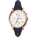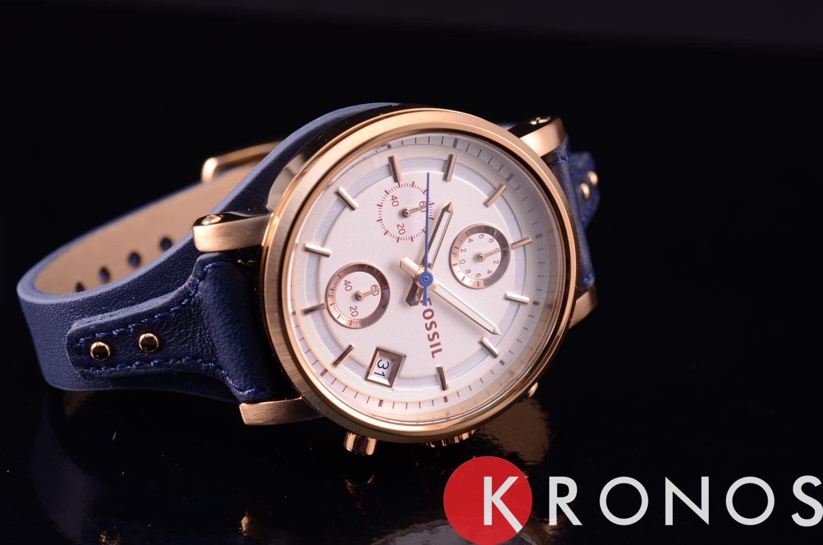 Элегантные женские кварцевые часы-хронограф в стальном круглом корпусе и сплошным кожаным ремешком-напульсником, с секундомером и календарем.