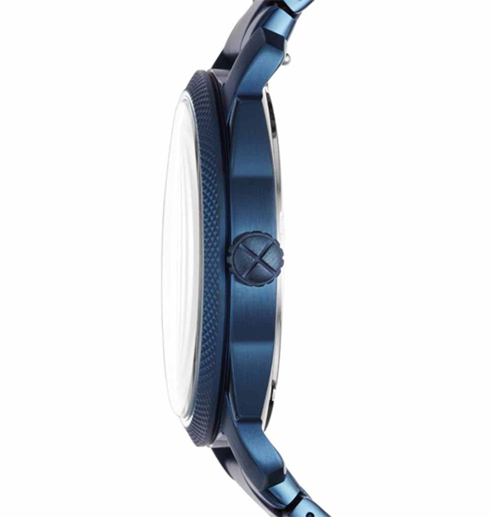 Стильные часы в синем цвете для сильного и мужественного. Machine Three-Hand Date Blue-Tone Stainless Steel Watch. Браслет с раскладывающейся застежкой.