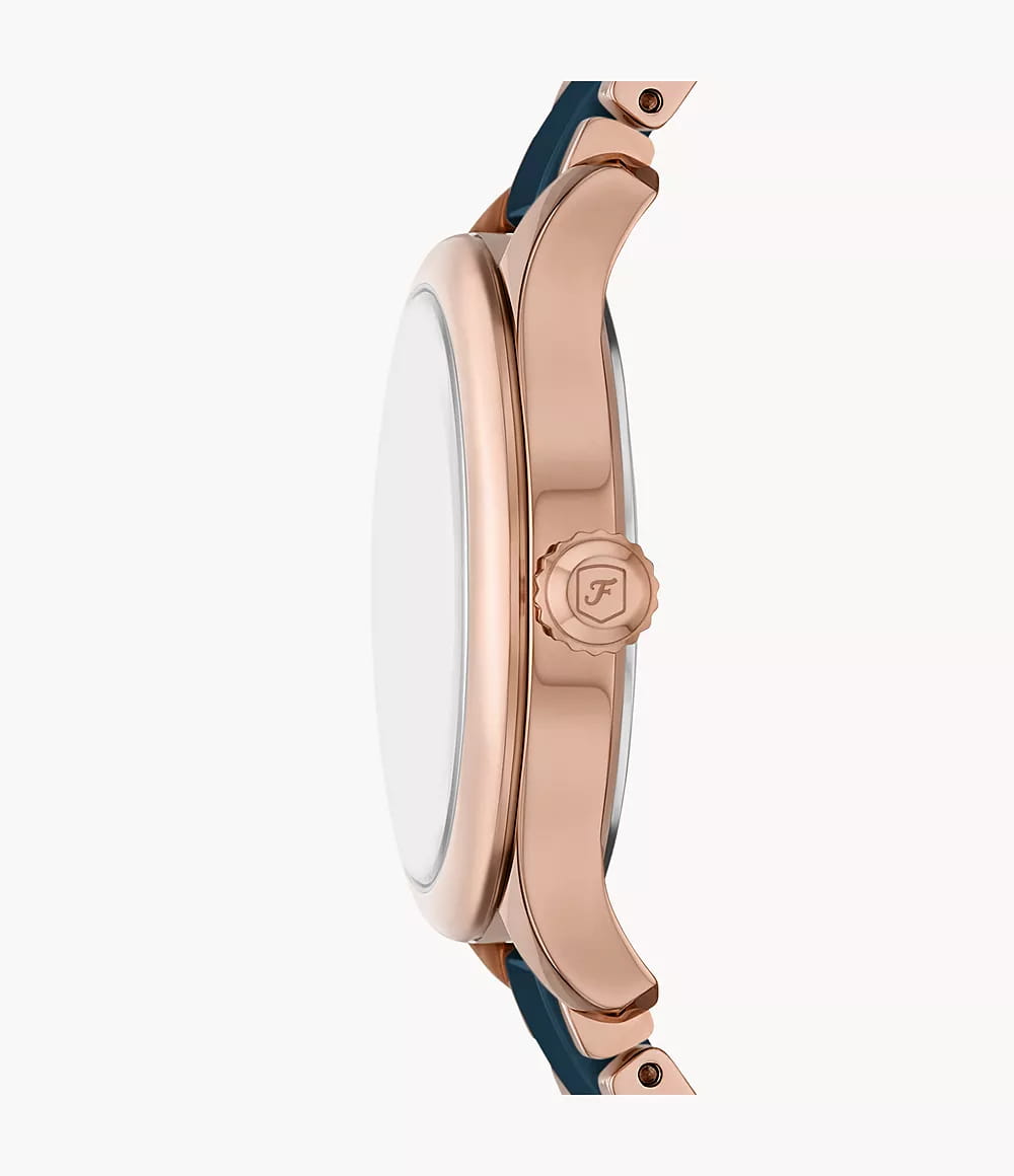 Женские кварцевые часы Fossil — это элегантный аксессуар, сочетающий стиль и надежность. Модель CE1134 выполнена в круглом корпусе диаметром 38 мм из нержавеющей стали с IP-покрытиемIP-покрытиеМетод ионного напыления. Демонстрирует повышенную устойчивость к истиранию, окислению и химическим веществам. Под воздействием высокого давления и температуры около 1500°C молекулы металла надёжно соединяются с частицами корпуса часов.. Циферблат синего цвета оформлен индексами и стрелками. Окошко даты расположено в положении 6 часов. Циферблат защищён минеральным стекломМинеральное стеклоМинеральное стекло представляет собой искусственно выращенный минерал кварца. Такое стекло отличается особой устойчивостью к повреждениям и царапинам. Уступает по некоторым качествам сапфировому стеклу.. Часы оснащены браслетом из керамики и стали с IP-покрытиемIP-покрытиеМетод ионного напыления. Демонстрирует повышенную устойчивость к истиранию, окислению и химическим веществам. Под воздействием высокого давления и температуры около 1500°C молекулы металла надёжно соединяются с частицами корпуса часов. на застёжке «бабочка» с кнопкамиЗастёжка "бабочка"Такой вид застёжки дополняется предохранителями, помогающими избежать случайного раскрытия браслета. Обладают изящным исполнением. . Водонепроницаемость 50 м позволяет использовать часы для плавания и повседневного ношения. Идеальный выбор для тех, кто ценит американское качество и безупречный дизайн.