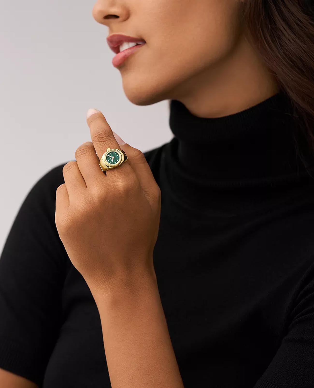 Уникальные часы-кольцо с минеральным стекломМинеральное стеклоМинеральное стекло представляет собой искусственно выращенный минерал кварца. Такое стекло отличается особой устойчивостью к повреждениям и царапинам. Уступает по некоторым качествам сапфировому стеклу. Fossil Raquel ES5308, кварцевый механизм с высокой точностью. Корпус и браслет часов изготовлены из нержавеющей стали с IP-покрытиемIP-покрытиеМетод ионного напыления. Демонстрирует повышенную устойчивость к истиранию, окислению и химическим веществам. Под воздействием высокого давления и температуры около 1500°C молекулы металла надёжно соединяются с частицами корпуса часов.. Класс водозащиты: 50 метров, позволит защитить корпус от случайных брызг или капель дождя.