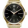 Мужские английские часы Greenwich GW 061.29.11 с минеральным стекломМинеральное стеклоМинеральное стекло представляет собой искусственно выращенный минерал кварца. Такое стекло отличается особой устойчивостью к повреждениям и царапинам. Уступает по некоторым качествам сапфировому стеклу.. Классические мужские часы серии Brig прекрасно подойдут как под костюм, так и под одежду направления casual. В часах установлен точный японский механизм Miyota. Корпус часов изготовлен из нержавеющей гипоаллергенной стали с PVDPVDУльтратонкое покрытие наносится в технике вакуумного напыления, сочетает в себе нитрид титана особой прочности со слоем золота или оксида хрома. Несёт в себе декоративную или защитную функцию. покрытием из желтого золота: он изящно смотрится на руке и не создает неудобств при контакте с одеждой с длинным рукавом. Размер корпуса 41 мм. Полировка на циферблате черного цвета выполнена в виде солнечных лучей. Индексы часов изготовлены вручную и закреплены на двух штифтах. Выпуклая форма рисок создает эффект игры солнечных бликов. Объемные часовая и минутная стрелки имеют мечеобразную форму. В модели представлена дополнительная функция – дата. Ее окошко расположено на уровне трех часов. Циферблат надежно защищен минеральным стеклом. На часах установлен стальной браслет миланского плетения. Логотип марки – изображение «розы ветров», символа удачи и новых открытий – расположен на циферблате, заводной головке и внутренней части ремешка. Задняя крышка часов украшена изображениями логотипа и корабля, который является символом марки Greenwich.