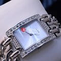 Яркий блестящий браслет с двумя линиями звеньев. Стальной корпус прямоугольной формы. Россыпь из кристаллов добавляет привлекательности стильному аксессуару. Аналоговый способ отображения времени. Оригинальный дизайн временных меток. Кварцевый механизм. Минеральное стекло. Водонепроницаемость в 10 WR.