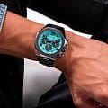 Мужские наручные часы с минеральным стекломМинеральное стеклоМинеральное стекло представляет собой искусственно выращенный минерал кварца. Такое стекло отличается особой устойчивостью к повреждениям и царапинам. Уступает по некоторым качествам сапфировому стеклу. Guess Empire GW0489G3, кварцевый механизм с высокой точностью. Класс водозащиты: 50 метров, позволит защитить корпус от случайных брызг или капель дождя. Корпус часов изготовлен из стали. Стальной браслет на раскладной застёжкеРаскладная застёжкаТакой тип застёжки используется только на браслетах из металла. Она никогда не раскрывается полностью, происходит разделение на 2 и более частей. Раскладывающая застёжка снизит вероятность потери часов к минимуму.. Стрелки с люминесцентным покрытиемЛюминесцентное покрытиеПозволяет считывать показания времени в темноте. Производители наносят на стрелки, часовые индексы, безель или поверхность циферблата светонакопительный состав, дающий холодное свечение.. 12-ти и 24-х часовой формат времени, дата и день недели вынесены на отдельные циферблаты. Метки в виде штрихов и арабских цифр. Рифленая заводная головка с защитой.