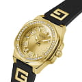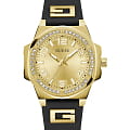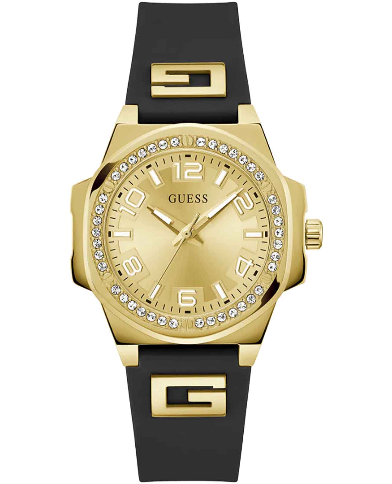 Женские наручные часы Guess Sport GW0617L5 с минеральным стекломМинеральное стеклоМинеральное стекло представляет собой искусственно выращенный минерал кварца. Такое стекло отличается особой устойчивостью к повреждениям и царапинам. Уступает по некоторым качествам сапфировому стеклу., кварцевый механизм с высокой точностью. Корпус часов изготовлен из нержавеющей стали с IP-покрытиемIP-покрытиеМетод ионного напыления. Демонстрирует повышенную устойчивость к истиранию, окислению и химическим веществам. Под воздействием высокого давления и температуры около 1500°C молекулы металла надёжно соединяются с частицами корпуса часов.. БезельБезельВнешний ободок, закрепляющий стекло. В спортивных часах так называется поворотное кольцо с делениями на циферблате, выполняет роль таймера – замеряет отрезки времени на шкале. Неподвижный безель – элемент декора. Однонаправленно вращающийся безель на дайверских часах позволяет фиксировать моменты погружения и выныривания на поверхность. украшен кристаллами. Стрелки с люминесцентным покрытиемЛюминесцентное покрытиеПозволяет считывать показания времени в темноте. Производители наносят на стрелки, часовые индексы, безель или поверхность циферблата светонакопительный состав, дающий холодное свечение.. Класс водозащиты: 50 метров, позволит защитить корпус от случайных брызг или капель дождя. Силиконовый ремешок на стандартной застежке.