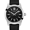 Мужские наручные часы с минеральным стекломМинеральное стеклоМинеральное стекло представляет собой искусственно выращенный минерал кварца. Такое стекло отличается особой устойчивостью к повреждениям и царапинам. Уступает по некоторым качествам сапфировому стеклу. Guess Crescent GW0630G1, кварцевый механизм с высокой точностью. Класс водозащиты: 50 метров, позволит защитить корпус от случайных брызг или капель дождя. Корпус часов изготовлен из стали. Кожаный ремешок на стандартной застёжке. Стрелки и метки с люминесцентным покрытиемЛюминесцентное покрытиеПозволяет считывать показания времени в темноте. Производители наносят на стрелки, часовые индексы, безель или поверхность циферблата светонакопительный состав, дающий холодное свечение..2 ремешка комплекте.