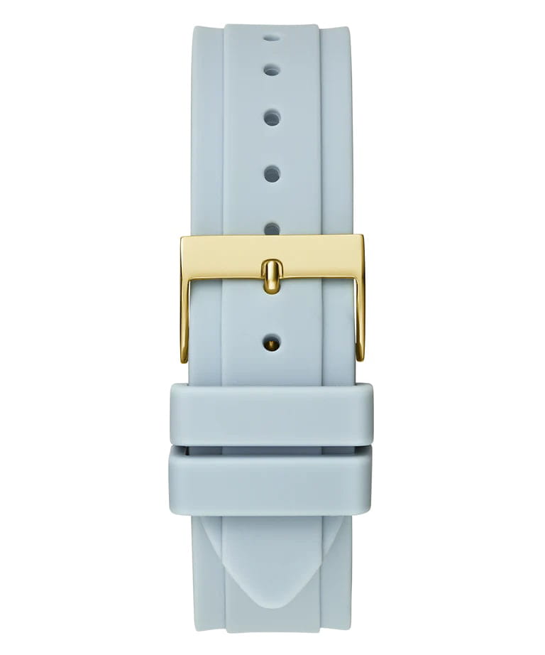 Женские наручные часы Guess GW0695L1 с минеральным стекломМинеральное стеклоМинеральное стекло представляет собой искусственно выращенный минерал кварца. Такое стекло отличается особой устойчивостью к повреждениям и царапинам. Уступает по некоторым качествам сапфировому стеклу., кварцевый механизм с высокой точностью. Корпус часов изготовлен из стали с IP-покрытиемIP-покрытиеМетод ионного напыления. Демонстрирует повышенную устойчивость к истиранию, окислению и химическим веществам. Под воздействием высокого давления и температуры около 1500°C молекулы металла надёжно соединяются с частицами корпуса часов.. Стрелки с люминесцентным покрытиемЛюминесцентное покрытиеПозволяет считывать показания времени в темноте. Производители наносят на стрелки, часовые индексы, безель или поверхность циферблата светонакопительный состав, дающий холодное свечение.. Класс водозащиты: 50 метров, позволит защитить корпус от случайных брызг или капель дождя. Силиконовый ремешок.