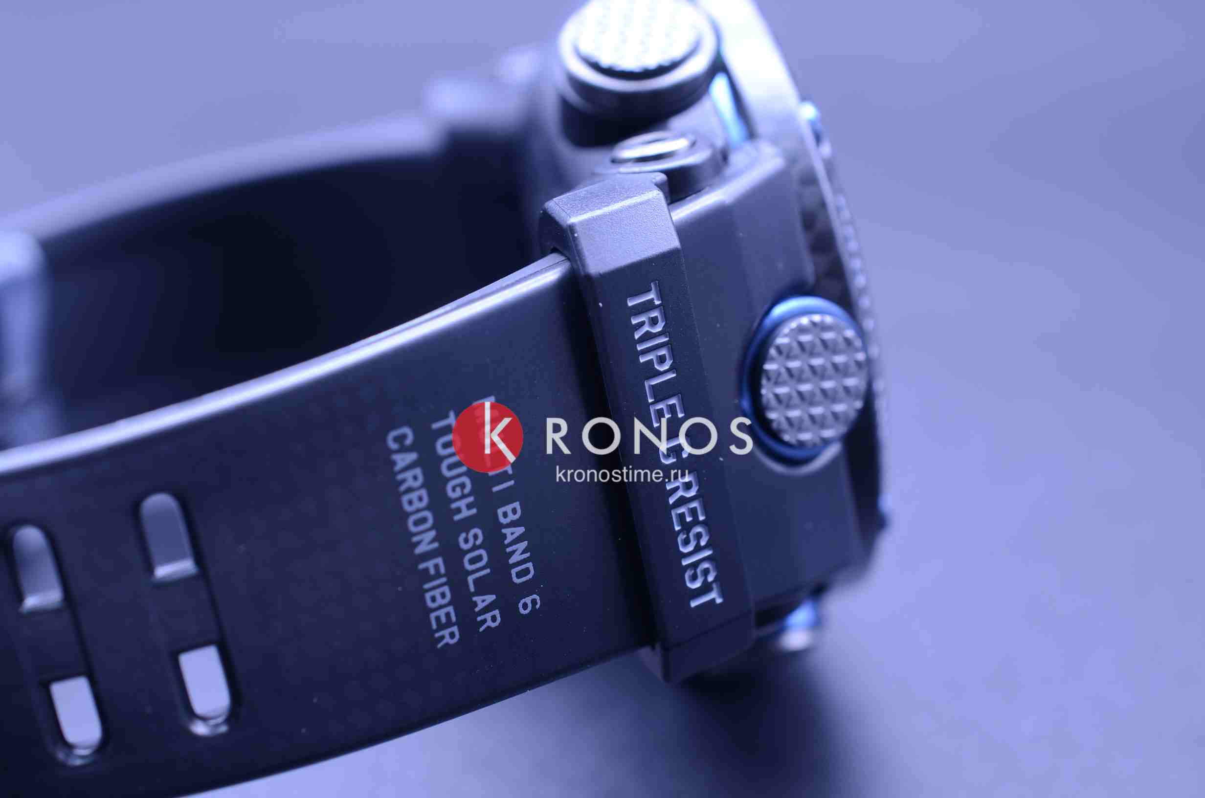 Внушительный аксессуар стильно смотрится на широком запястье, гармонично смотрятся крупные детали в голубом цвете. Задняя крышка здесь отсутствует, ударопрочный корпусУдаропрочный корпусМеханизм заключён в корпус, выполненный из современных материалов, устойчивых к ударам, механическим повреждениям и падению с высоты: инновационный пластик, карбон, нержавеющая сталь, титан. сделан из монолитного углеродного монокока, вдохновлённого конструкцией ранних самолётов. Он состоит из 52 карбоновых слоёв, уникальная текстура просматривается на боковых частях безеляБезельВнешний ободок, закрепляющий стекло. В спортивных часах так называется поворотное кольцо с делениями на циферблате, выполняет роль таймера – замеряет отрезки времени на шкале. Неподвижный безель – элемент декора. Однонаправленно вращающийся безель на дайверских часах позволяет фиксировать моменты погружения и выныривания на поверхность. – с успехом реализована технология Carbon Core GuardCarbon Core Guard Новейшая структура корпуса, разработанная Casio. Полиуретановая пластина дополнительно усилена карбоновыми вставками, что придаёт специальную защиту от механических повреждений. Карбон отличается лёгкостью и прочностью.. Полимерный ремешок тоже имеет усиление карбоновыми волокнами. Наручные часы обладают полезным функционалом: BluetoothBluetoothСовременная технология, позволяющая синхронизировать часы с телефоном и переносить данные. Часы с Bluetooth расширяют возможности вашего смартфона и делают его использование ещё более удобным., будильник, мировое времяМировое время Полезное часовое усложнение, отображающее время в основных городах и известных областях по всему миру, оно связано с часовыми поясами, удобно для путешественников и бизнесменов. , таймер, приём радиосигнала, питание от солнечной батареи . Сапфировое стекло с антибликовой обработкой. Яркая люминесцентная подсветкаЛюминесцентное покрытиеПозволяет считывать показания времени в темноте. Производители наносят на стрелки, часовые индексы, безель или поверхность циферблата светонакопительный состав, дающий холодное свечение.. Габариты: 50,1 x 46,4 x 16,9 мм.
