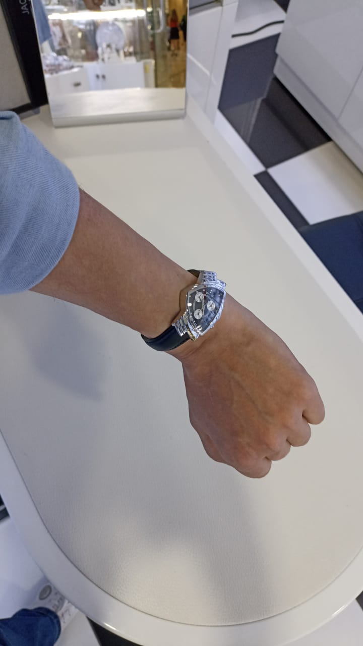Хронографы, да ещё и треугольные! Со стальным корпусом и на кожаном ремешке! Отображают дату.