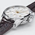 Часы-хронографХронографФункция позволяет измерять отрезки времени с особой точностью: часы, минуты, секунды. Верным признаком хронографа является наличие на циферблате 3 дополнительных окошек-счётчиков. Hamilton Jazzmaster Auto Chrono H32596551 с автоматическим механизмом высокой точности. Сапфировое стеклоСапфировое стеклоПрочный и надёжный материал из кристалла сапфира синтетического происхождения, характеризующийся особой твёрдостью и устойчивостью к царапинам и повреждениям. устойчивое к появлению царапин, обладающее высокой прозрачностью. Класс водозащиты: 100 метров, позволит плавать, нырять и заниматься другими водными видами спорта. Корпус часов изготовлен из нержавеющей стали. Кожаный ремешок на стандартной застёжке. Стрелки и метки с люминесцентным покрытиемЛюминесцентное покрытиеПозволяет считывать показания времени в темноте. Производители наносят на стрелки, часовые индексы, безель или поверхность циферблата светонакопительный состав, дающий холодное свечение.. Окошко даты находится в положении 4 часа.