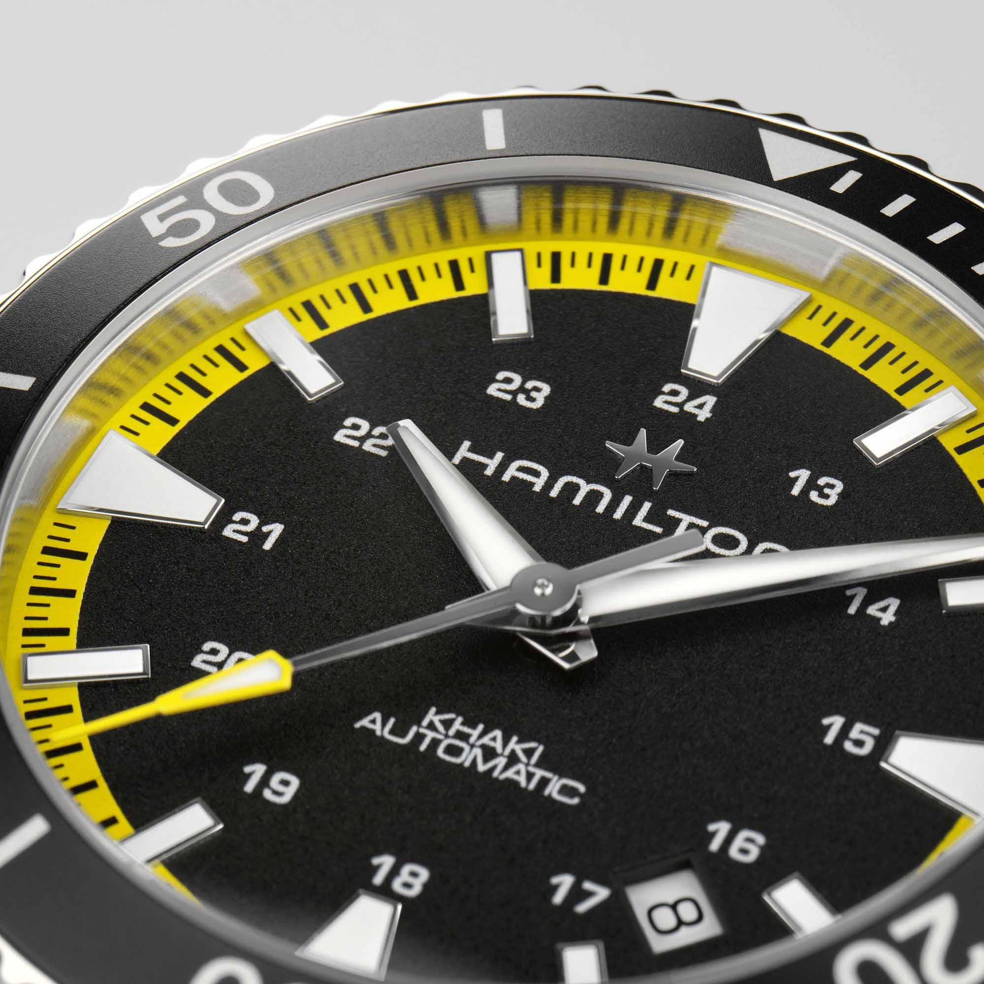 На пляже, у бассейна или в океанских глубинах: новая модель Khaki Navy Scuba гарантированно произведет фурор. Часы для современных мореплавателей, любителей подводного плавания, серфинга и пляжного отдыха с розовым каучуковым ремешком и контрастным черным циферблатом сочетают в себе эффектный дизайн и функциональность. Независимо от того, хронометрируете ли вы время плавания, бега или пребывания на солнце, они позаботятся о том, чтобы вы сохраняли спокойствие даже при высоких температурах. Сапфировое стеклоСапфировое стеклоПрочный и надёжный материал из кристалла сапфира синтетического происхождения, характеризующийся особой твёрдостью и устойчивостью к царапинам и повреждениям. устойчивое к появлению царапин, обладающее высокой прозрачностью.