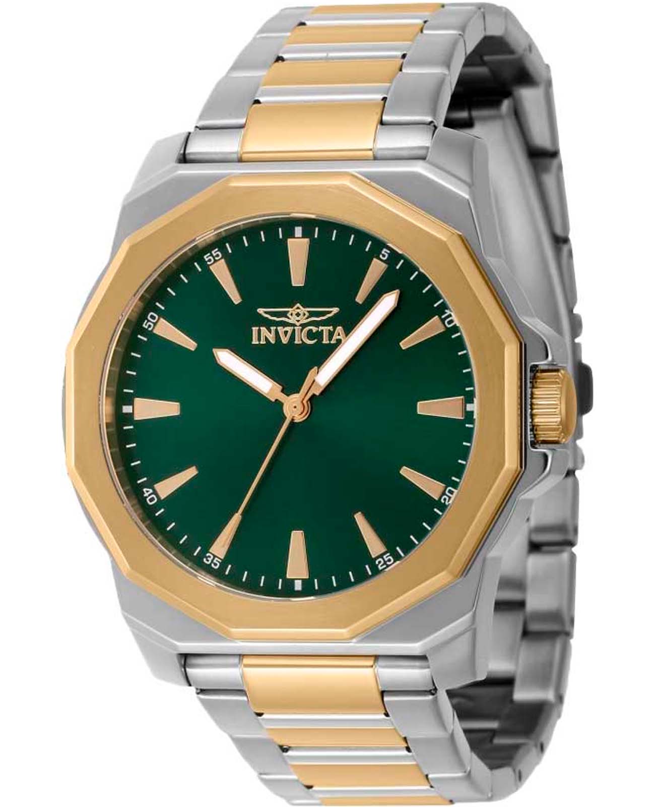 Мужские наручные часы Invicta IN46836, сочетающей в себе стильный дизайн и надежность современных технологий, обладают круглым корпусом, изготовленным из качественной стали, что обеспечивает устойчивость к внешним воздействиям. БезельБезельВнешний ободок, закрепляющий стекло. В спортивных часах так называется поворотное кольцо с делениями на циферблате, выполняет роль таймера – замеряет отрезки времени на шкале. Неподвижный безель – элемент декора. Однонаправленно вращающийся безель на дайверских часах позволяет фиксировать моменты погружения и выныривания на поверхность. с IP-покрытиемIP-покрытиеМетод ионного напыления. Демонстрирует повышенную устойчивость к истиранию, окислению и химическим веществам. Под воздействием высокого давления и температуры около 1500°C молекулы металла надёжно соединяются с частицами корпуса часов.. Модель оснащена зеленым циферблатом, который гармонично дополняет минеральное стеклоМинеральное стеклоМинеральное стекло представляет собой искусственно выращенный минерал кварца. Такое стекло отличается особой устойчивостью к повреждениям и царапинам. Уступает по некоторым качествам сапфировому стеклу., прошедшее специальную закалку для придания большей прочности . Браслет выполнен так же из стали с частичным IP-покрытиемIP-покрытиеМетод ионного напыления. Демонстрирует повышенную устойчивость к истиранию, окислению и химическим веществам. Под воздействием высокого давления и температуры около 1500°C молекулы металла надёжно соединяются с частицами корпуса часов.