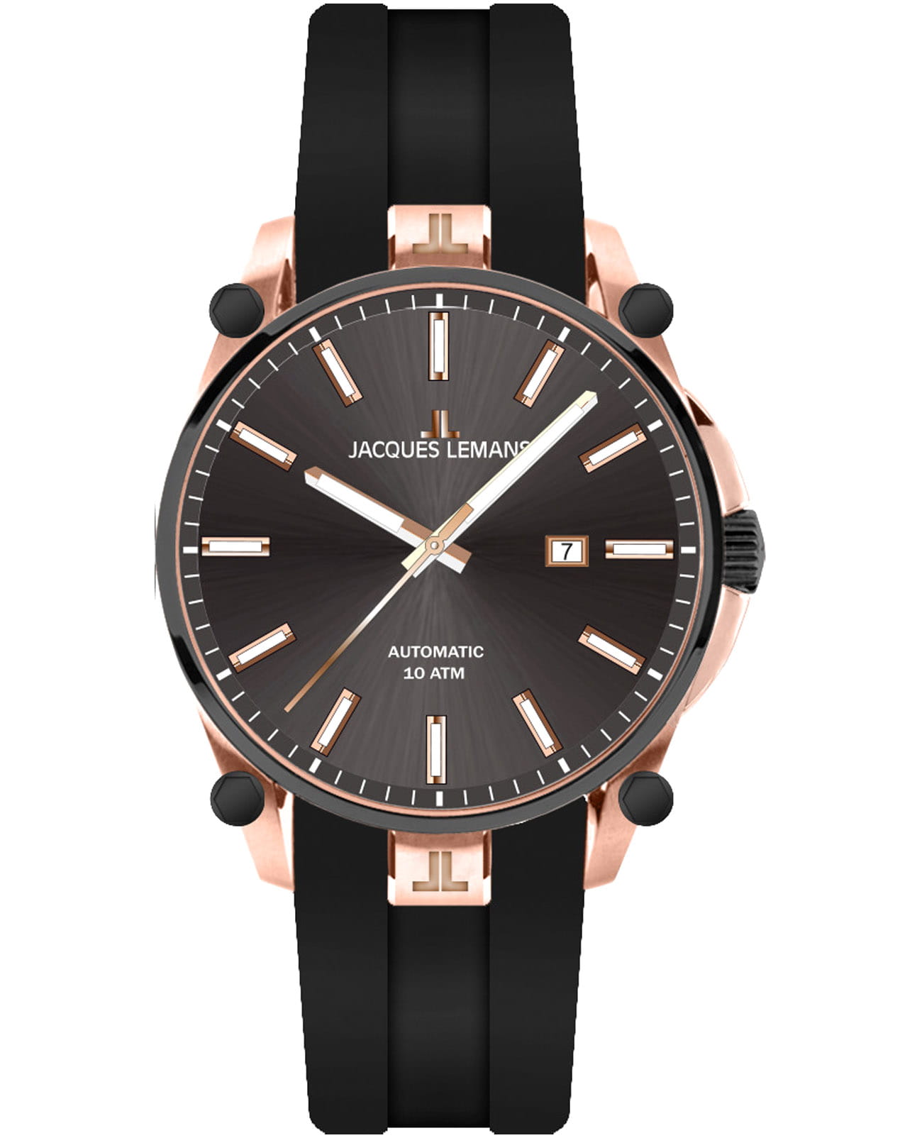 Мужские механические часы с автоподзаводом Jacques Lemans 1-2203B – лаконичная красота и изысканная элегантность. Оригинальная модель с классическим оформлением станет превосходным завершением образа, наделив его индивидуальным характером. Корпус выполнен из нержавеющей стали с PVD-покрытиемPVDУльтратонкое покрытие наносится в технике вакуумного напыления, сочетает в себе нитрид титана особой прочности со слоем золота или оксида хрома. Несёт в себе декоративную или защитную функцию. цвета розового золота, диаметром 44 мм, что обеспечивает долговечность и утончённый внешний вид. Минеральное стеклоМинеральное стеклоМинеральное стекло представляет собой искусственно выращенный минерал кварца. Такое стекло отличается особой устойчивостью к повреждениям и царапинам. Уступает по некоторым качествам сапфировому стеклу. с сапфировым напылением защищает циферблат от царапин. Силиконовый ремешок на стандартной застёжке обеспечивает комфортное ношение. Неподвижный безельБезельВнешний ободок, закрепляющий стекло. В спортивных часах так называется поворотное кольцо с делениями на циферблате, выполняет роль таймера – замеряет отрезки времени на шкале. Неподвижный безель – элемент декора. Однонаправленно вращающийся безель на дайверских часах позволяет фиксировать моменты погружения и выныривания на поверхность. с PVD-покрытиемPVDУльтратонкое покрытие наносится в технике вакуумного напыления, сочетает в себе нитрид титана особой прочности со слоем золота или оксида хрома. Несёт в себе декоративную или защитную функцию. черного цвета. Водозащита 100 метров позволит плавать, нырять и заниматься другими водными видами спорта. Стрелки и метки с люминесцентным покрытиемЛюминесцентное покрытиеПозволяет считывать показания времени в темноте. Производители наносят на стрелки, часовые индексы, безель или поверхность циферблата светонакопительный состав, дающий холодное свечение. позволяющие легко определять время даже в темноте. Окошко даты находится в положении 3 часа. Рифленая заводная головка с защитой. Это аксессуар для мужчины, который ценит классический стиль и функциональность.