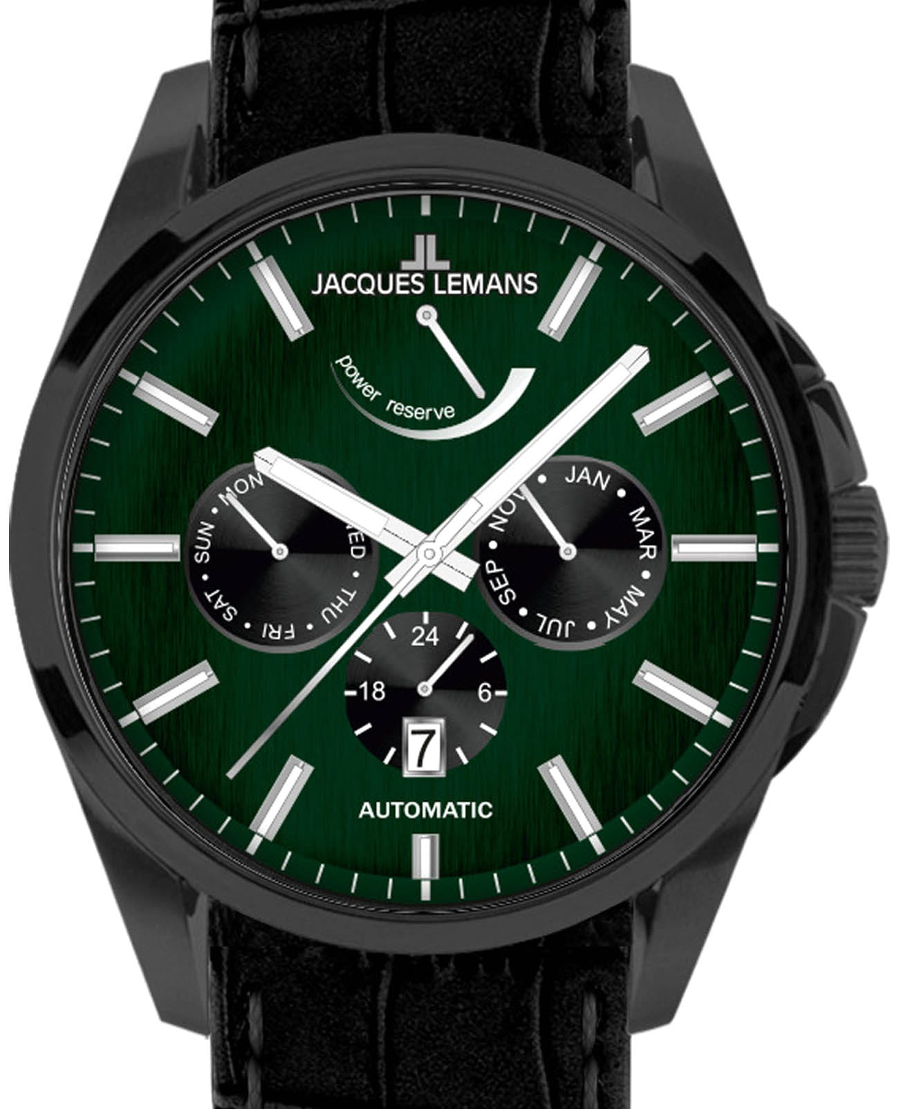 Мужские механические часы с автоподзаводом Jacques Lemans 1-2204J – лаконичная красота и изысканная элегантность. Оригинальная модель с классическим оформлением станет превосходным завершением образа, наделив его индивидуальным характером. Корпус выполнен из нержавеющей стали с PVD-покрытиемPVDУльтратонкое покрытие наносится в технике вакуумного напыления, сочетает в себе нитрид титана особой прочности со слоем золота или оксида хрома. Несёт в себе декоративную или защитную функцию. черного цвета, диаметром 44 мм, что обеспечивает долговечность и утончённый внешний вид. Минеральное стеклоМинеральное стеклоМинеральное стекло представляет собой искусственно выращенный минерал кварца. Такое стекло отличается особой устойчивостью к повреждениям и царапинам. Уступает по некоторым качествам сапфировому стеклу. с сапфировым напылением защищает циферблат от царапин. Кожаный ремешок на стандартной застёжке обеспечивает комфортное ношение. Водозащита 100 метров позволит плавать, нырять и заниматься другими водными видами спорта. Стрелки и метки с люминесцентным покрытиемЛюминесцентное покрытиеПозволяет считывать показания времени в темноте. Производители наносят на стрелки, часовые индексы, безель или поверхность циферблата светонакопительный состав, дающий холодное свечение. позволяющие легко определять время даже в темноте. 12-ти и 24-х часовой формат времени. День недели и месяц вынесены на отдельные циферблаты. Окошко даты находится в положении 6 часов. Рифленая заводная головка с защитой. Это аксессуар для мужчины, который ценит классический стиль и функциональность.
