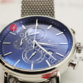 Швейцарские мужские часы-хронографХронографФункция позволяет измерять отрезки времени с особой точностью: часы, минуты, секунды. Верным признаком хронографа является наличие на циферблате 3 дополнительных окошек-счётчиков. Jacques Philippe Aviator JPQGC021236, кварцевый механизм с высокой точностью. Сапфировое стеклоСапфировое стеклоПрочный и надёжный материал из кристалла сапфира синтетического происхождения, характеризующийся особой твёрдостью и устойчивостью к царапинам и повреждениям. устойчивое к появлению царапин, обладающее высокой прозрачностью. Корпус часов изготовлен из нержавеющей стали. На циферблате три дополнительных индикатора. Окошко даты находится в положении 4 часов. Класс водозащиты: 50 метров, позволит защитить корпус от случайных брызг или капель дождя. Стальной браслет миланского плетения на раскладном замкеРаскладной замокДанный вариант застежки используется только на часах с металлическим браслетом. Отличительная особенность такого крепления в том, что длина браслета становится универсальной и вы можете самостоятельно отрегулировать нужный вам размер – застежка просто двигается по браслету часов..