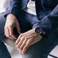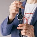 Водозащита 5 ATM защищает часы от брызг и дождя. Кожаный ремешок синего цвета с классической застёжкой обеспечивает комфортное ношение и надёжную фиксацию на запястье.