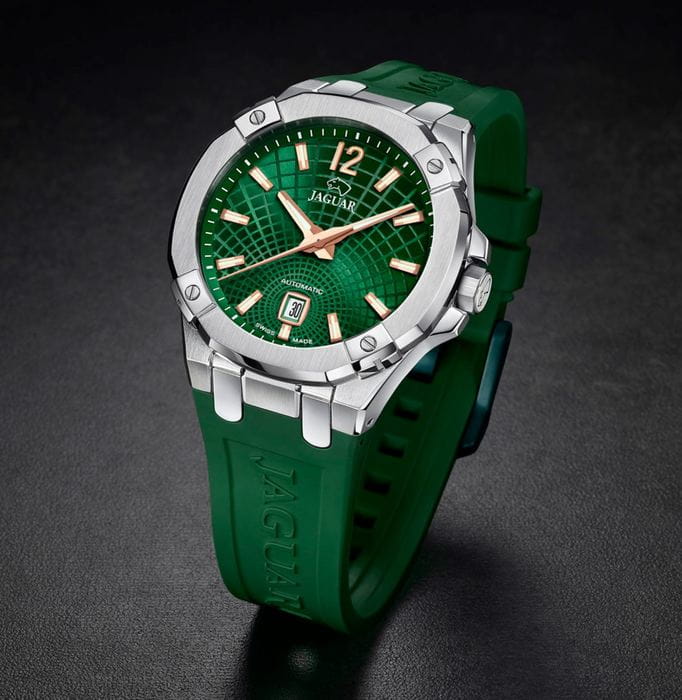 Мужские швейцарские часы Jaguar Diplomatic J1030/3 представляют собой воплощение высокого часового искусства. Они оснащены механическим механизмом с автоподзаводом, что обеспечивает точность и надёжность работы. Часы защищены сапфировым стекломСапфировое стеклоПрочный и надёжный материал из кристалла сапфира синтетического происхождения, характеризующийся особой твёрдостью и устойчивостью к царапинам и повреждениям., устойчивым к мелким механическим повреждениям, что гарантирует сохранность механизма. Корпус часов выполнен из нержавеющей стали, придающий ему прочность и долговечность. Стрелки и метки часов покрыты люминесцентным составомЛюминесцентное покрытиеПозволяет считывать показания времени в темноте. Производители наносят на стрелки, часовые индексы, безель или поверхность циферблата светонакопительный состав, дающий холодное свечение., обеспечивающий их хорошую видимость в условиях недостаточной освещённости. Окошко даты расположено в положении 6 часов. Класс водозащиты часов составляет 100 метров, что позволяет плавать, нырять и заниматься другими водными видами спорта. Изысканный каучуковый ремешок на стандартной застежке, что обеспечивает удобство и комфорт при ношении. Стильный циферблат и изысканные детали делают эти часы незаменимым аксессуаром для любого случая, от официальных мероприятий до повседневного использования.