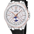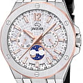 Jaguar J1040/1 из коллекции Moonphase — элегантные мужские часы, сочетающие стиль и функциональность. Корпус диаметром 44 мм выполнен из нержавеющей стали, а безельБезельВнешний ободок, закрепляющий стекло. В спортивных часах так называется поворотное кольцо с делениями на циферблате, выполняет роль таймера – замеряет отрезки времени на шкале. Неподвижный безель – элемент декора. Однонаправленно вращающийся безель на дайверских часах позволяет фиксировать моменты погружения и выныривания на поверхность. покрыт PVD-покрытиемPVDУльтратонкое покрытие наносится в технике вакуумного напыления, сочетает в себе нитрид титана особой прочности со слоем золота или оксида хрома. Несёт в себе декоративную или защитную функцию., что придаёт часам изысканный внешний вид и дополнительную устойчивость к износу. Сапфировое стеклоСапфировое стеклоПрочный и надёжный материал из кристалла сапфира синтетического происхождения, характеризующийся особой твёрдостью и устойчивостью к царапинам и повреждениям. защищает циферблат от царапин и повреждений. Белый циферблат с серебристыми индексами и стрелками обеспечивает отличную читаемость. Часы оснащены функциями индикации даты, дня недели и фазы луны, добавляя практичности и элегантности. Кожаный ремень, который обеспечивает комфортное ношение и стандартная застежка гарантирует надёжную фиксацию на запястье. Водозащита до 10 ATM (100 метров) делает часы подходящими для плавания и занятий водными видами спорта. Jaguar J1040/1 — это выбор для мужчин, которые ценят швейцарское качество, стиль и функциональность.