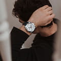 Мужские швейцарские часы-хронографХронографФункция позволяет измерять отрезки времени с особой точностью: часы, минуты, секунды. Верным признаком хронографа является наличие на циферблате 3 дополнительных окошек-счётчиков. Jaguar Executive Chrono J857/1. Кварцевый швейцарский калибр Ronda 5030d. Сапфировое стеклоСапфировое стеклоПрочный и надёжный материал из кристалла сапфира синтетического происхождения, характеризующийся особой твёрдостью и устойчивостью к царапинам и повреждениям. устойчивое к мелким механическим повреждениям. Корпус и браслет часов изготовлены из нержавеющей стали. Стрелки и метки с люминесцентным покрытиемЛюминесцентное покрытиеПозволяет считывать показания времени в темноте. Производители наносят на стрелки, часовые индексы, безель или поверхность циферблата светонакопительный состав, дающий холодное свечение.. Окошко даты находится в положении между «4» и «5 часами». Класс водозащиты: 100 метров, позволит плавать, нырять и заниматься другими водными видами спорта. Кожаный ремешок на стандартной застёжке.
