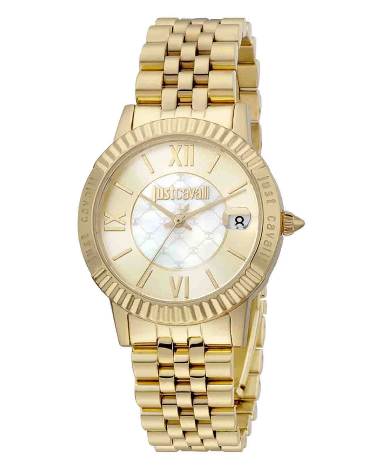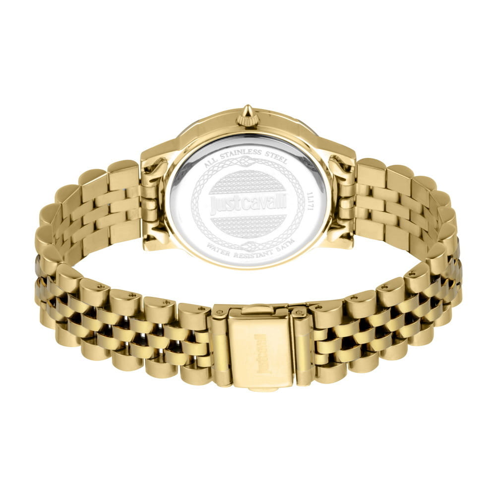 Итальянские женские часы с кварцевым механизмом Just Cavalli animalier JC1L171M0045, кварцевый механизм с высокой точностью. Класс водозащиты: 50 метров, позволит защитить корпус от случайных брызг или капель дождя. Корпус часов изготовлен из стали, золотистого цвета.