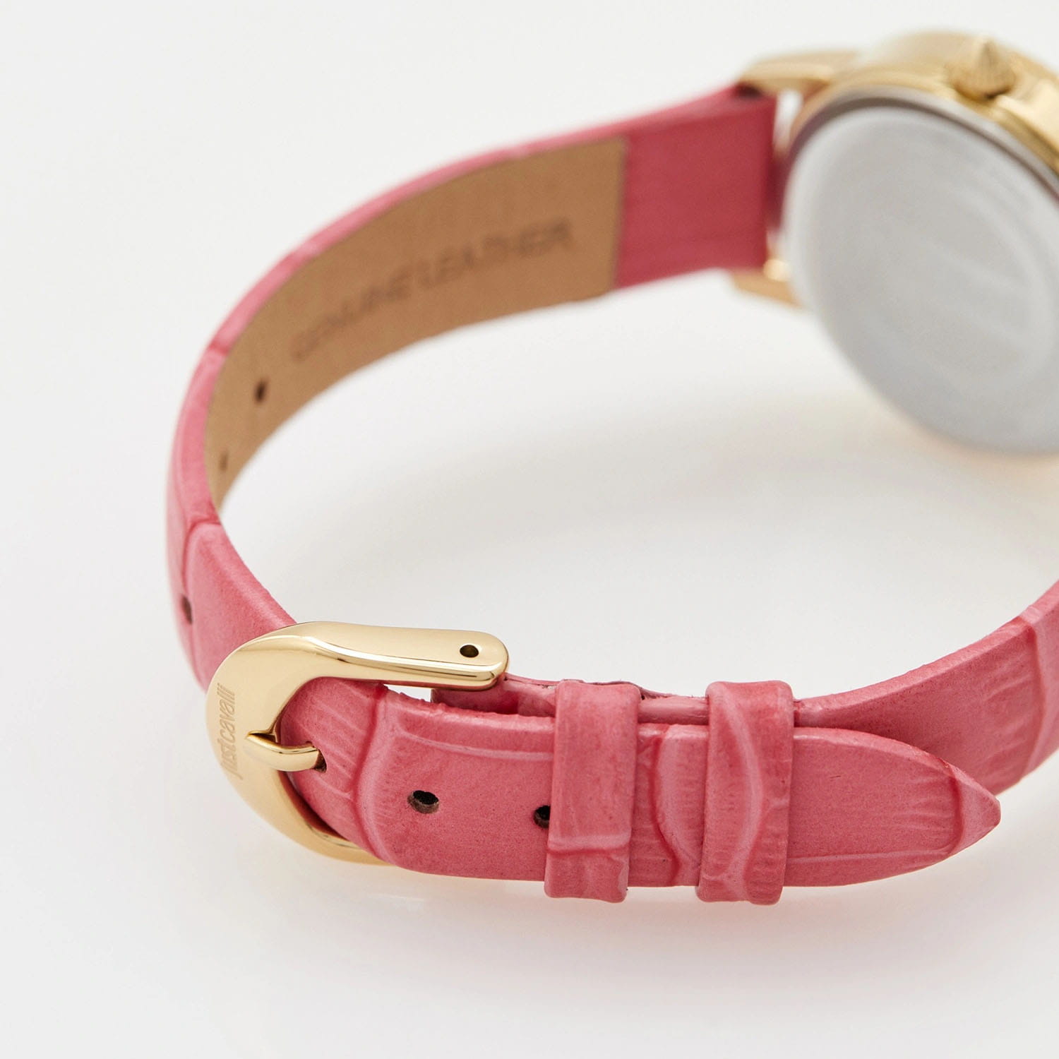 Элегантные женские часы Just Cavalli JC1L258L0215 с минеральным стекломМинеральное стеклоМинеральное стекло представляет собой искусственно выращенный минерал кварца. Такое стекло отличается особой устойчивостью к повреждениям и царапинам. Уступает по некоторым качествам сапфировому стеклу., кварцевый механизм с высокой точностью. Циферблат украшен кристаллами. Корпус часов изготовлен из стали с PVD-покрытиемPVDУльтратонкое покрытие наносится в технике вакуумного напыления, сочетает в себе нитрид титана особой прочности со слоем золота или оксида хрома. Несёт в себе декоративную или защитную функцию.. Класс водозащиты: 50 метров, позволит защитить корпус от случайных брызг или капель дождя. Кожаный ремешок на стандартной застёжке.