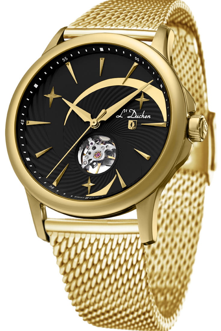 Мужские механические наручные часы с автоподзаводом LDuchen Spacematic D 154.21.31 M. Корпус изготовлен из стали с PVD-покрытиемPVDУльтратонкое покрытие наносится в технике вакуумного напыления, сочетает в себе нитрид титана особой прочности со слоем золота или оксида хрома. Несёт в себе декоративную или защитную функцию. . Сапфировое стеклоСапфировое стеклоПрочный и надёжный материал из кристалла сапфира синтетического происхождения, характеризующийся особой твёрдостью и устойчивостью к царапинам и повреждениям., выпуклое с обеих сторон, внутреннее антибликовое покрытие. Водозащита: 50 метров, позволит защитить корпус от случайных брызг или капель дождя. Метки в виде штрихов. Рифленая заводная головка. Удобный и надежный стальной браслет миланского плетения с регулируемой застежкой.