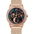 Женские швейцарские механические часы с автоподзаводом L'Duchen Celeste D 737.41.31 M. Сапфировое стеклоСапфировое стеклоПрочный и надёжный материал из кристалла сапфира синтетического происхождения, характеризующийся особой твёрдостью и устойчивостью к царапинам и повреждениям. устойчивое к появлению царапин, обладающее высокой прозрачностью. Корпус часов выполнен из нержавеющей стали с PVD-покрытиемPVDУльтратонкое покрытие наносится в технике вакуумного напыления, сочетает в себе нитрид титана особой прочности со слоем золота или оксида хрома. Несёт в себе декоративную или защитную функцию.. БезельБезельВнешний ободок, закрепляющий стекло. В спортивных часах так называется поворотное кольцо с делениями на циферблате, выполняет роль таймера – замеряет отрезки времени на шкале. Неподвижный безель – элемент декора. Однонаправленно вращающийся безель на дайверских часах позволяет фиксировать моменты погружения и выныривания на поверхность. украшен фианитами. Класс водозащиты: 50 метров, позволит защитить корпус от случайных брызг или капель дождя. Стальной браслет миланского плетения с PVD-покрытиемPVDУльтратонкое покрытие наносится в технике вакуумного напыления, сочетает в себе нитрид титана особой прочности со слоем золота или оксида хрома. Несёт в себе декоративную или защитную функцию. на раскладном замкеРаскладной замокДанный вариант застежки используется только на часах с металлическим браслетом. Отличительная особенность такого крепления в том, что длина браслета становится универсальной и вы можете самостоятельно отрегулировать нужный вам размер – застежка просто двигается по браслету часов..