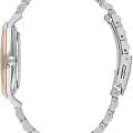 Женские часы Lee Cooper LC07548.520 — это стильное сочетание элегантности и современного дизайна. Круглый корпус диаметром 36 мм выполнен из суперметалла серебристого цвета. Неподвижный безельБезельВнешний ободок, закрепляющий стекло. В спортивных часах так называется поворотное кольцо с делениями на циферблате, выполняет роль таймера – замеряет отрезки времени на шкале. Неподвижный безель – элемент декора. Однонаправленно вращающийся безель на дайверских часах позволяет фиксировать моменты погружения и выныривания на поверхность. с IP-покрытиемIP-покрытиеМетод ионного напыления. Демонстрирует повышенную устойчивость к истиранию, окислению и химическим веществам. Под воздействием высокого давления и температуры около 1500°C молекулы металла надёжно соединяются с частицами корпуса часов. цвета розового золота, что придает модели особый блеск. Серебристый циферблат защищен минеральным стекломМинеральное стеклоМинеральное стекло представляет собой искусственно выращенный минерал кварца. Такое стекло отличается особой устойчивостью к повреждениям и царапинам. Уступает по некоторым качествам сапфировому стеклу., обеспечивающим устойчивость к царапинам и украшен цирконами в виде меток. Часы оснащены надежным кварцевым механизмом, а металлический браслет с частичным IP-покрытиемIP-покрытиеМетод ионного напыления. Демонстрирует повышенную устойчивость к истиранию, окислению и химическим веществам. Под воздействием высокого давления и температуры около 1500°C молекулы металла надёжно соединяются с частицами корпуса часов. на раскладной застёжкеРаскладная застёжкаТакой тип застёжки используется только на браслетах из металла. Она никогда не раскрывается полностью, происходит разделение на 2 и более частей. Раскладывающая застёжка снизит вероятность потери часов к минимуму. гарантирует комфортную посадку на запястье. Водозащита 30 метров защищает модель от случайных брызг и дождя. Lee Cooper — отличный выбор для тех, кто ценит утонченность и качество.