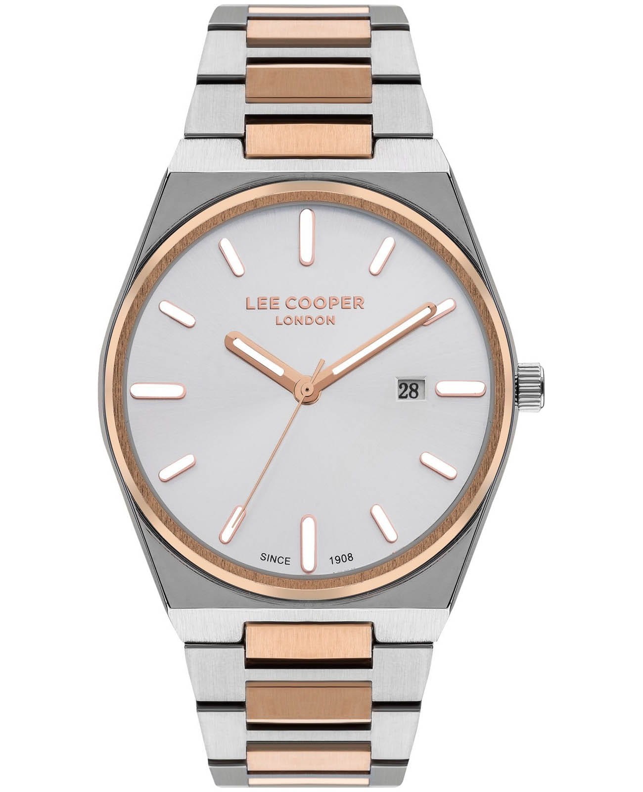 Мужские часы Lee Cooper LC07608.530 – это стильная модель, которая сочетает в себе современный дизайн и высокую функциональность. Они идеально подходят для ежедневного ношения и могут стать отличным дополнением к любому наряду. Корпус часов диаметром 43 мм выполнен  из суперметалла, золотистый безельБезельВнешний ободок, закрепляющий стекло. В спортивных часах так называется поворотное кольцо с делениями на циферблате, выполняет роль таймера – замеряет отрезки времени на шкале. Неподвижный безель – элемент декора. Однонаправленно вращающийся безель на дайверских часах позволяет фиксировать моменты погружения и выныривания на поверхность. из нержавеющей стали с IP-покрытиемIP-покрытиеМетод ионного напыления. Демонстрирует повышенную устойчивость к истиранию, окислению и химическим веществам. Под воздействием высокого давления и температуры около 1500°C молекулы металла надёжно соединяются с частицами корпуса часов. обеспечивает долговечность и надежность. Минеральное стеклоМинеральное стеклоМинеральное стекло представляет собой искусственно выращенный минерал кварца. Такое стекло отличается особой устойчивостью к повреждениям и царапинам. Уступает по некоторым качествам сапфировому стеклу. защищает циферблат от царапин, сохраняя его безупречный вид. Механизм часов гарантирует точный ход и надежную работу, а раскладная застёжкаРаскладная застёжкаТакой тип застёжки используется только на браслетах из металла. Она никогда не раскрывается полностью, происходит разделение на 2 и более частей. Раскладывающая застёжка снизит вероятность потери часов к минимуму. обеспечивает комфортную фиксацию на запястье. Модель LC07608.530 станет прекрасным выбором для тех, кто ценит стиль и качество в аксессуарах.