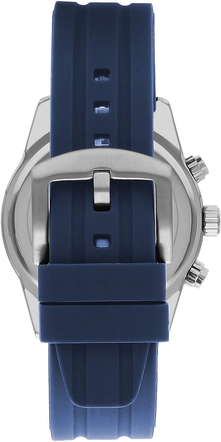 Мужские кварцевые часы Lee Cooper LC07628.399 — это мультифункциональный аксессуар с лаконичным дизайном. Изысканный корпус диаметром 44 мм выполнен из суперметалла серебристого цвета с поворотным безелемБезельВнешний ободок, закрепляющий стекло. В спортивных часах так называется поворотное кольцо с делениями на циферблате, выполняет роль таймера – замеряет отрезки времени на шкале. Неподвижный безель – элемент декора. Однонаправленно вращающийся безель на дайверских часах позволяет фиксировать моменты погружения и выныривания на поверхность. с IP-покрытиемIP-покрытиеМетод ионного напыления. Демонстрирует повышенную устойчивость к истиранию, окислению и химическим веществам. Под воздействием высокого давления и температуры около 1500°C молекулы металла надёжно соединяются с частицами корпуса часов.. Стильный циферблат оформлен изысканными индексами и дополнен окошками даты, дня недели и 24-часового индикатора. Циферблат защищён минеральным стекломМинеральное стеклоМинеральное стекло представляет собой искусственно выращенный минерал кварца. Такое стекло отличается особой устойчивостью к повреждениям и царапинам. Уступает по некоторым качествам сапфировому стеклу.. Стрелки и метки с люминесцентным покрытиемЛюминесцентное покрытиеПозволяет считывать показания времени в темноте. Производители наносят на стрелки, часовые индексы, безель или поверхность циферблата светонакопительный состав, дающий холодное свечение., обеспечивающим хорошую читаемость в темноте. Функция второго часового поясаВторой часовой поясФункция, позволяющая отображать время двух часовых поясов одновременно. делает часы удобными для путешественников. Часы оснащены надежным каучуковым ремешком с классической пряжкой, что обеспечивает удобство и комфорт. Водонепроницаемость 50 м позволяет использовать часы для повседневного ношения. Универсальный выбор для тех, кто ценит функциональность и надёжность.