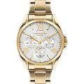 Женские часы Lee Cooper LC07685.130 — это стильное сочетание элегантности и современного дизайна. Круглый корпус диаметром 36 мм выполнен из суперметалла с IP-покрытиемIP-покрытиеМетод ионного напыления. Демонстрирует повышенную устойчивость к истиранию, окислению и химическим веществам. Под воздействием высокого давления и температуры около 1500°C молекулы металла надёжно соединяются с частицами корпуса часов. золотого цвета, придающий модели особый блеск. Серебристый циферблат с золотыми индексами защищен минеральным стекломМинеральное стеклоМинеральное стекло представляет собой искусственно выращенный минерал кварца. Такое стекло отличается особой устойчивостью к повреждениям и царапинам. Уступает по некоторым качествам сапфировому стеклу., обеспечивающим устойчивость к царапинам. Часы оснащены надежным кварцевым механизмом, а стальной браслет с IP-покрытиемIP-покрытиеМетод ионного напыления. Демонстрирует повышенную устойчивость к истиранию, окислению и химическим веществам. Под воздействием высокого давления и температуры около 1500°C молекулы металла надёжно соединяются с частицами корпуса часов. на раскладной застёжкеРаскладная застёжкаТакой тип застёжки используется только на браслетах из металла. Она никогда не раскрывается полностью, происходит разделение на 2 и более частей. Раскладывающая застёжка снизит вероятность потери часов к минимуму. гарантирует комфортную посадку на запястье. Мультифункциональная модель с индикацией даты, дня недели, с дополнительным 24-х часовым индикатором.  Водозащита 30 метров защищает модель от случайных брызг и дождя. Lee Cooper  — это идеальный выбор для тех, кто ценит классический стиль, точность механизма и качество материалов в одном аксессуаре.
